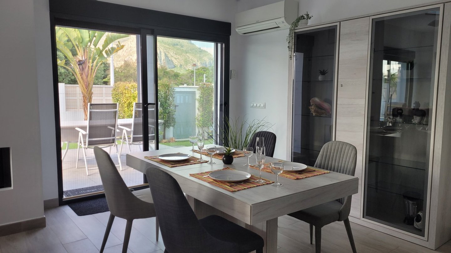 Diese moderne Villa in Els Poblets, gebaut im Jahr 2018, verfügt über ein beheiztes Schwimmbad und befindet sich in einer ruhigen Wohngegend. Die Immobilie ist auf einer einzigen Etage auf einem geschlossenen Grundstück von 500 m² verteilt und bietet einen herrlichen Panoramablick auf die Berge sowie eine ideale Ausrichtung, um das ganze Jahr über die Sonne zu genießen.