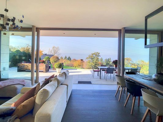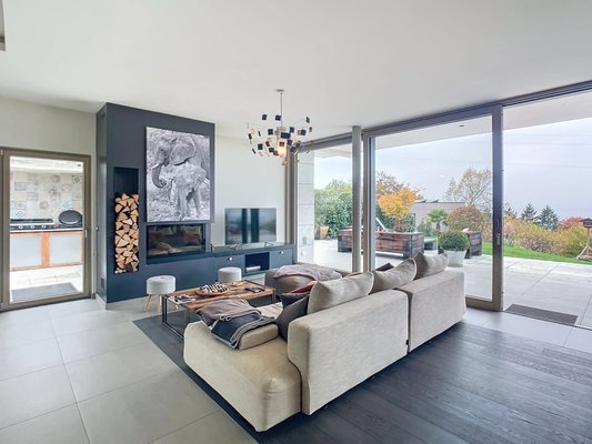 Évian-les-Bains, Golfsektor, Architektenvilla, die 2016 gebaut wurde. Sie bietet eine Wohnfläche von 305 m² mit einem Wohnzimmer und einer Küche von ca. 80 m², einer Mastersuite, 3 Schlafzimmern, einem Weinkeller, einer Zigarrenlounge, einem