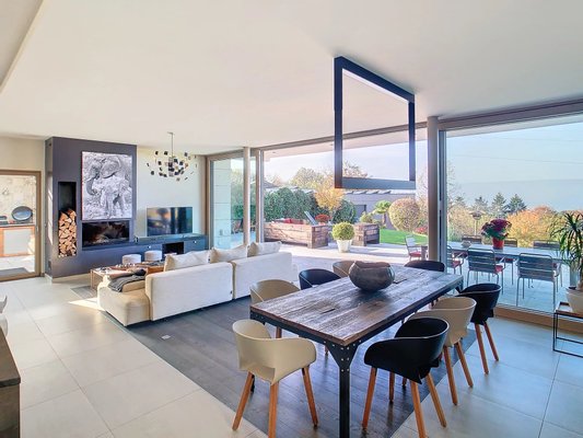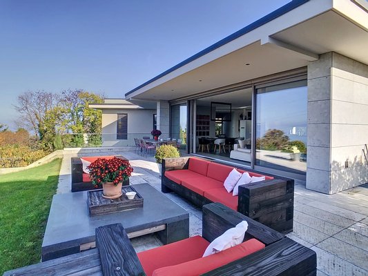 Évian-les-Bains, Golfsektor, Architektenvilla, die 2016 gebaut wurde. Sie bietet eine Wohnfläche von 305 m² mit einem Wohnzimmer und einer Küche von ca. 80 m², einer Mastersuite, 3 Schlafzimmern, einem Weinkeller, einer Zigarrenlounge, einem Spielzimmer, einem Büro und mehreren Außenterrassen. Im Anbau befinden sich eine Sommerküche und ein Jacuzzi. Das Haus befindet sich in einem privilegierten und gesicherten Bereich mit einem sehr schönen Blick auf den Genfersee und den Parcours des Golfresorts von Évian-les-Bains. Das Ensemble bietet eine sehr schöne und hochwertige Ausstattung, die mit dem modernen Stil der Villa harmoniert. Vollständige Unterlagen auf Anfrage.