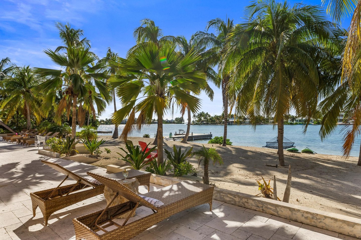 Dieses atemberaubende Anwesen erstreckt sich über einen weitläufigen, 200 Fuß langen, unberührten Strand, bietet die doppelte Grundstücksgröße und gewährleistet eine unvergleichliche Privatsphäre.