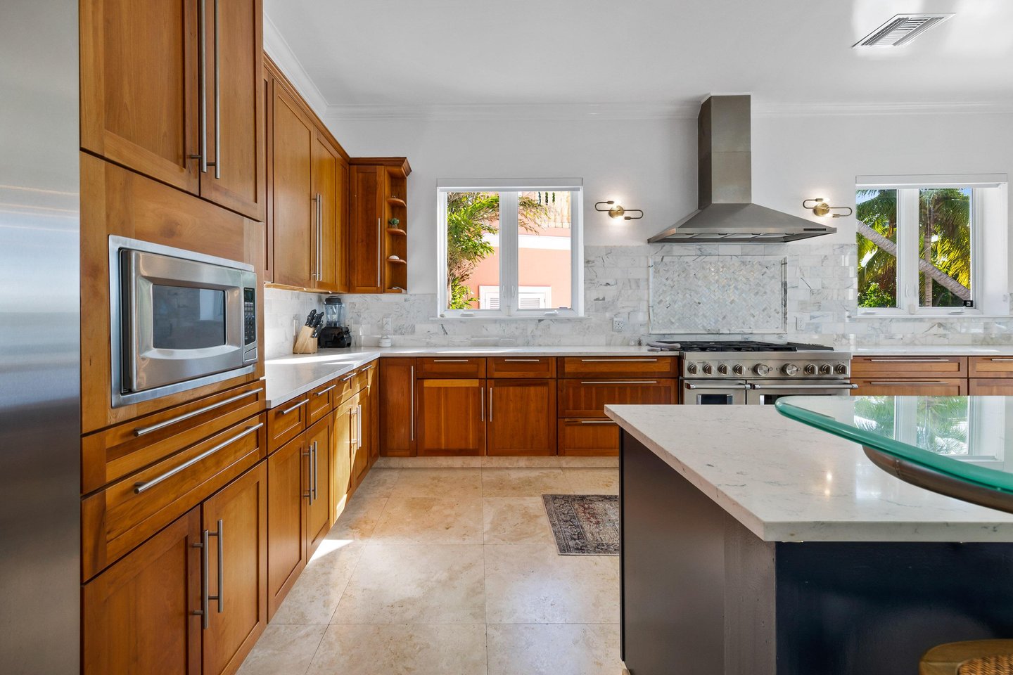 Neu aufgewertete Innen- und Außenbereiche – Das Anwesen präsentiert frische Farben, moderne Beleuchtung, individuelle Fensterbehandlungen, brandneue Designermöbel und vieles mehr und schafft eine ruhige Inselatmosphäre. Die Küche im Küchenstil mit hochwertigen Geräten ist ideal zum Kochen, Gastgeben oder einfach nur zum Entspannen mit der Familie.
