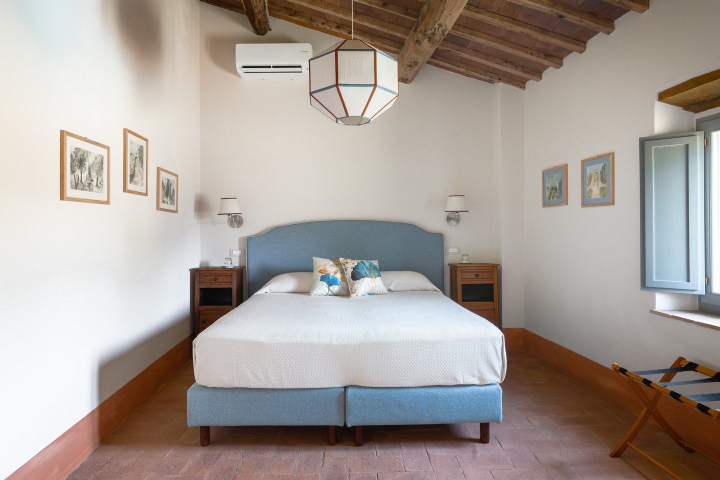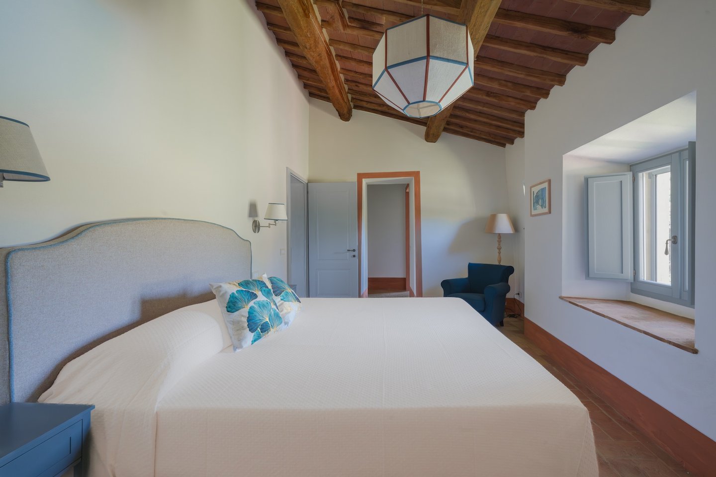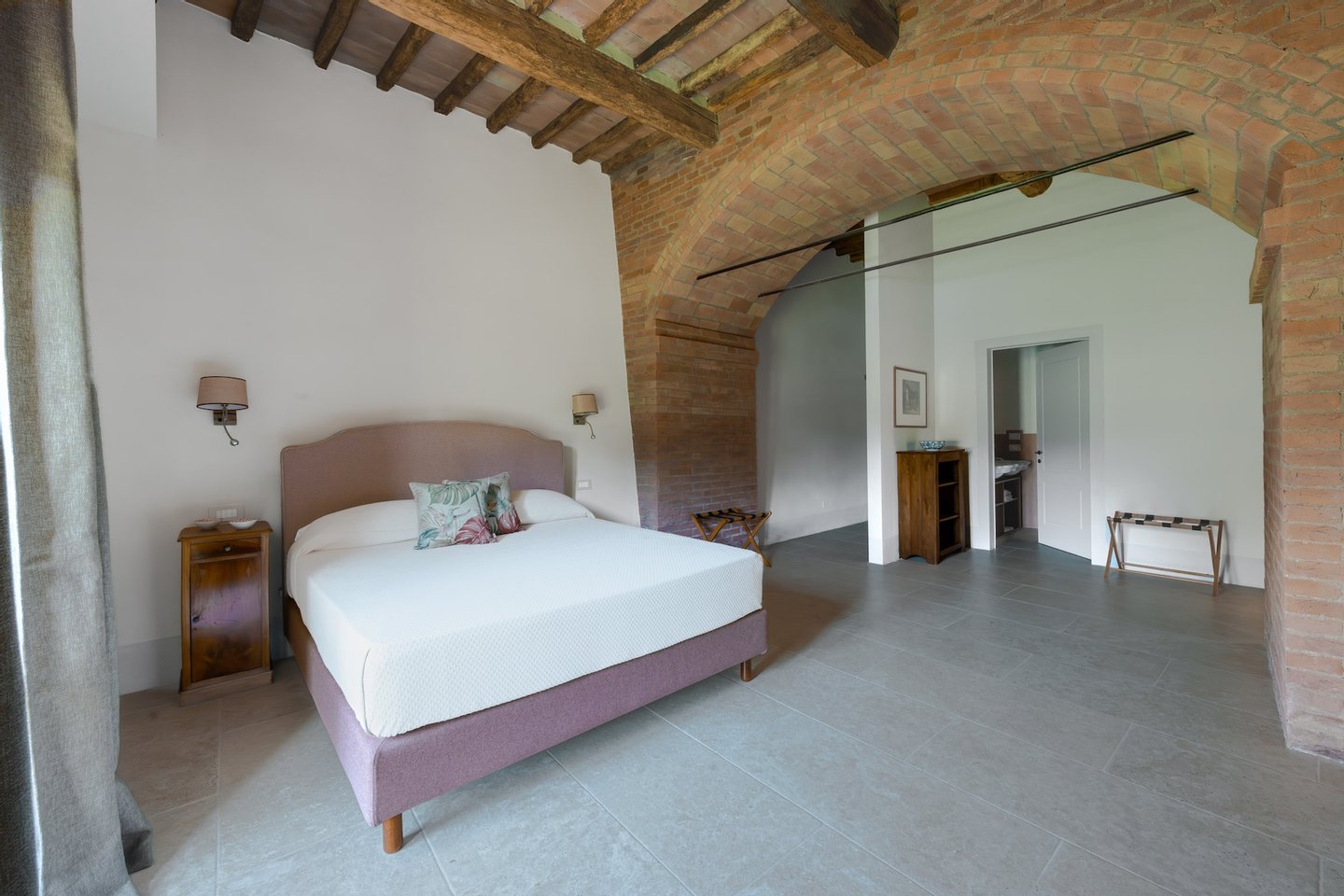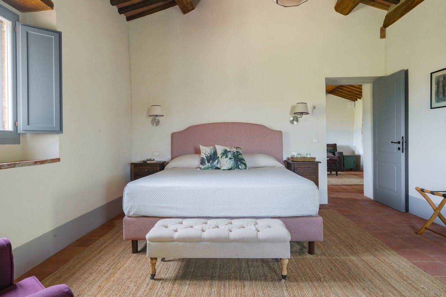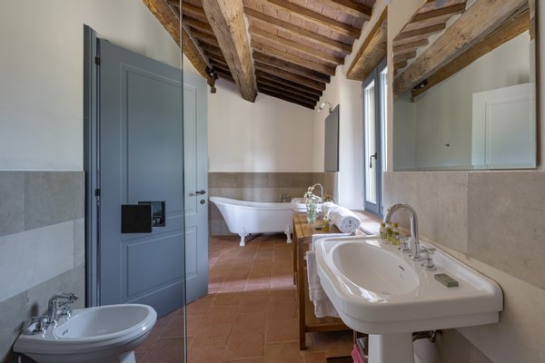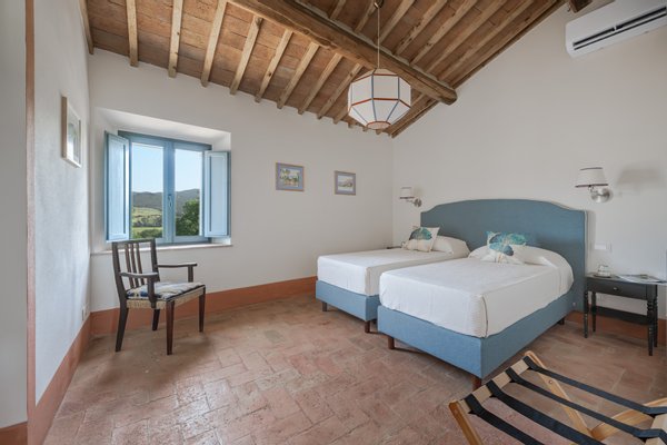This lovely villa, recently fully renovated, offers complete privacy for its guests, who are treated to breathtaking views of Montalcino from its hilltop position. The villa features two spacious suites and four superior rooms, each with an ensuite