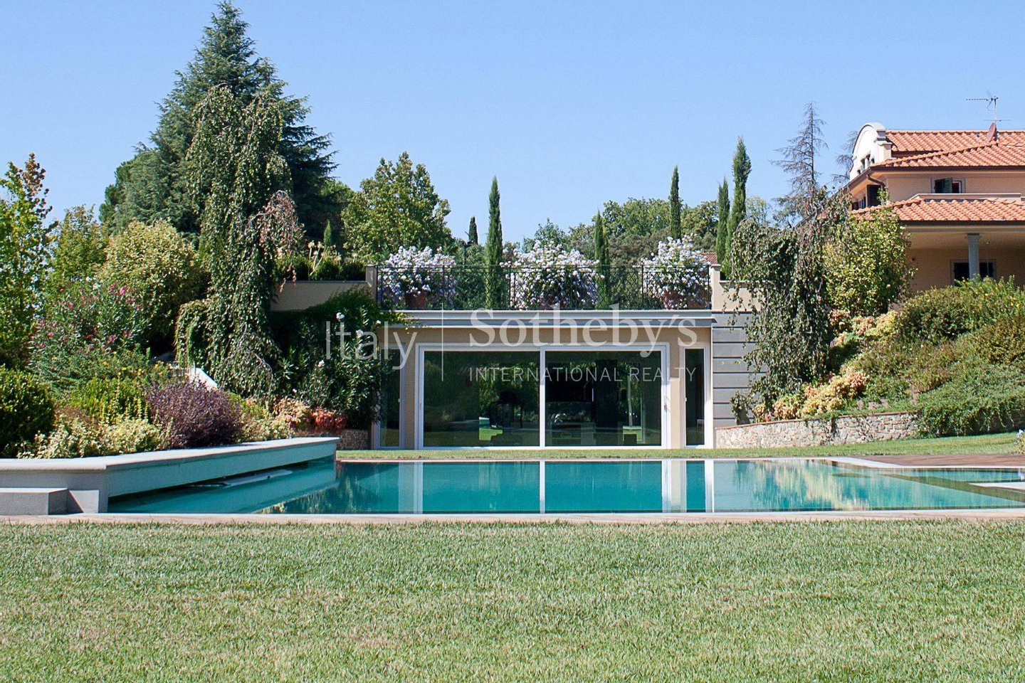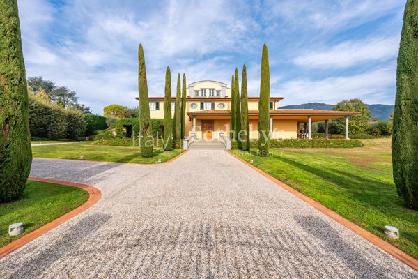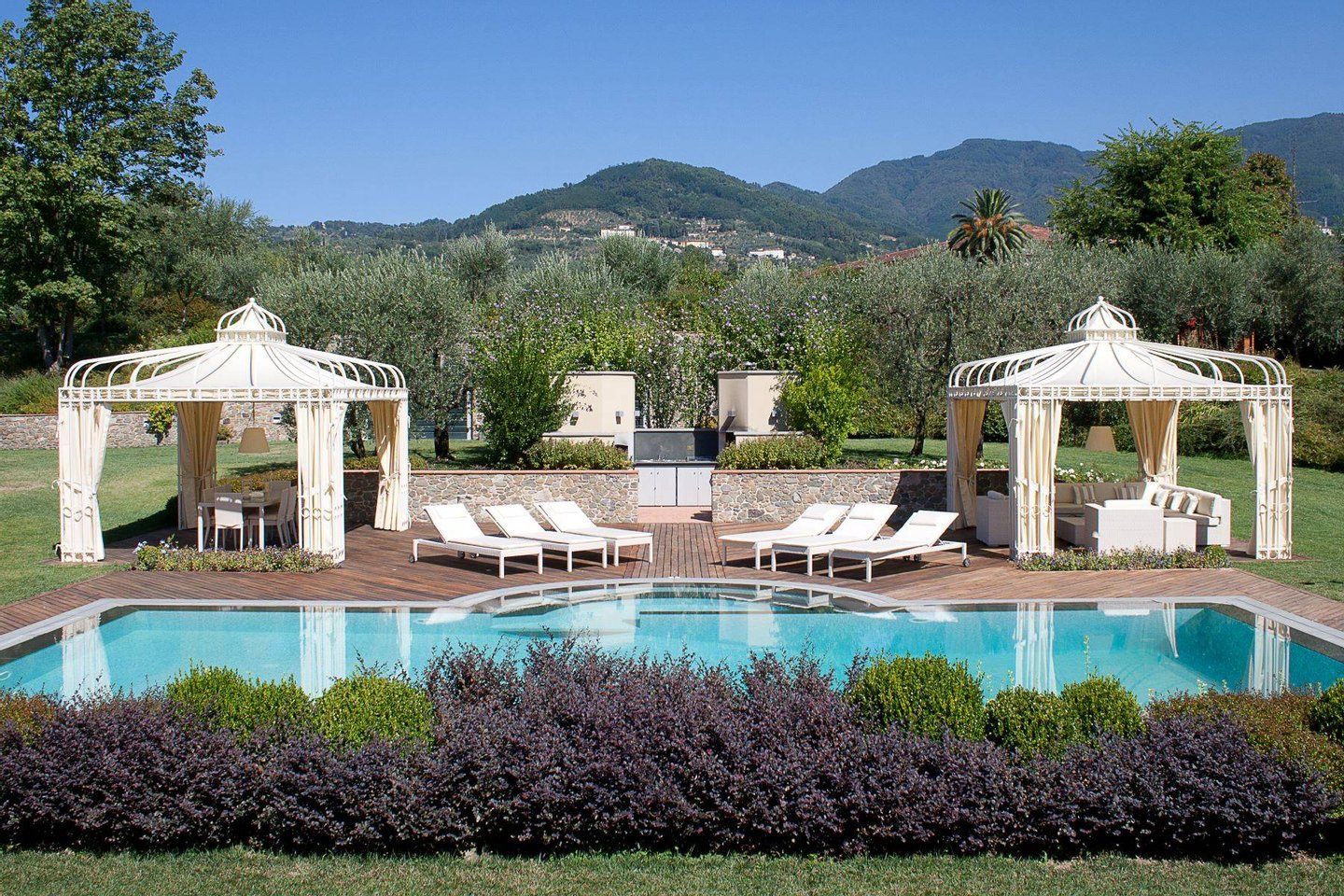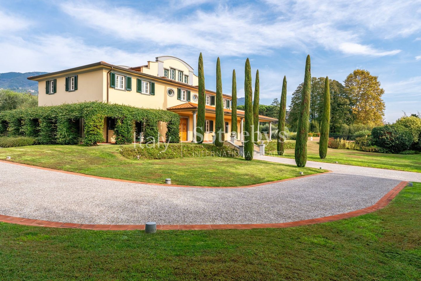 In einer der exklusivsten Gegenden von Lucca, auf den ersten Hügeln und in der Nähe der historischen Villen von Marlia, nur 9 km von den beeindruckenden Stadtmauern von Lucca entfernt, befindet sich diese prächtige, vor etwa zehn Jahren neu erbaute Villa. Die Villa ist in einen weitläufigen Park eingebettet, der ihre Eleganz unterstreicht und mit sorgfältig ausgewählten Zierpflanzen gestaltet wurde. Zur Immobilie gehören zudem ein Swimmingpool mit Whirlpool-Bereich, Sonnendeck und schmiedeeisernen Pavillons sowie ein Grillbereich, der mit einem Ofen und Kochfeld ausgestattet ist und sich in unmittelbarer Nähe befindet.