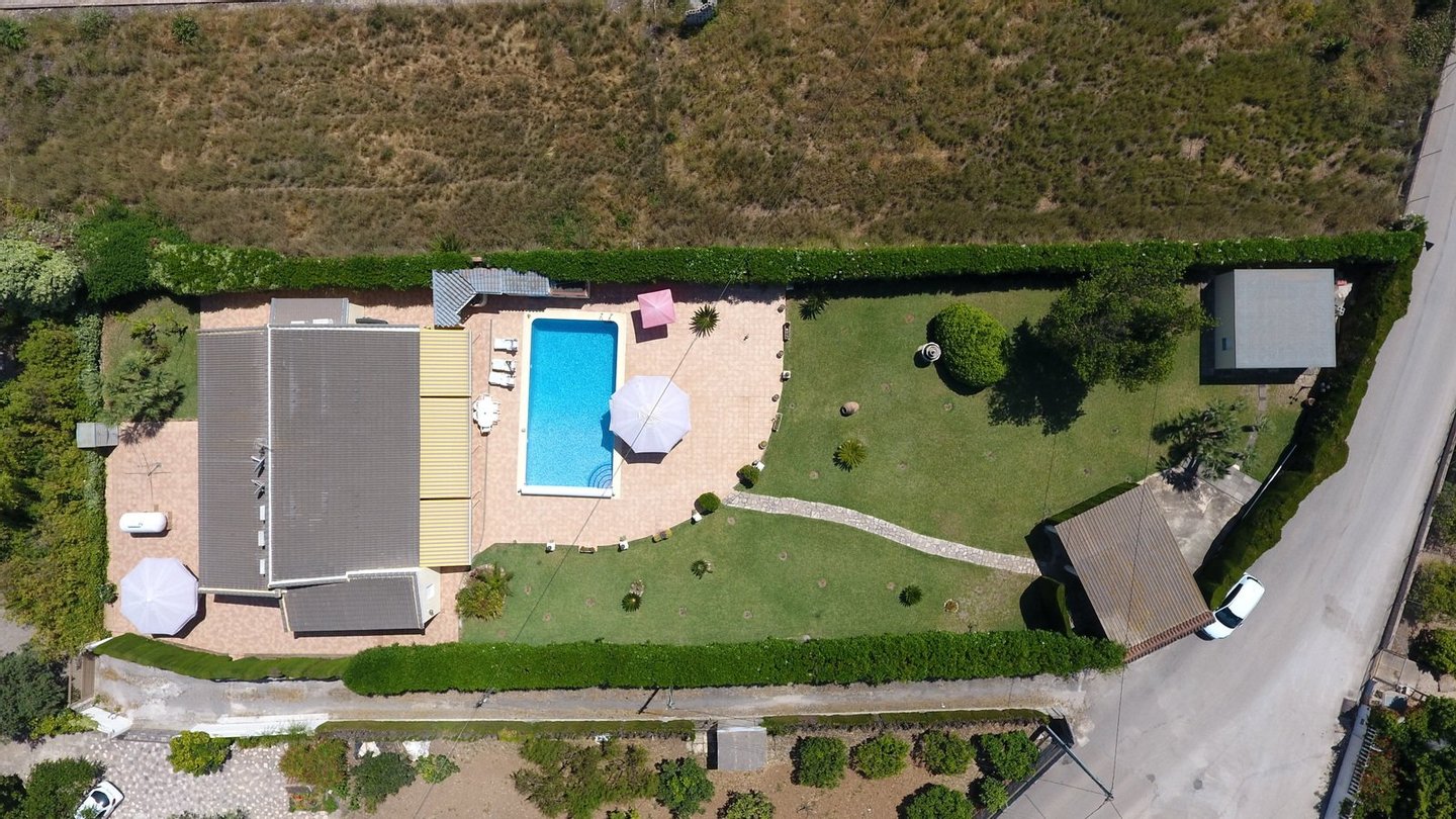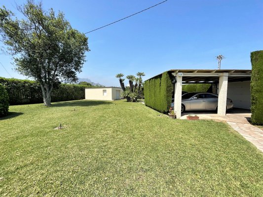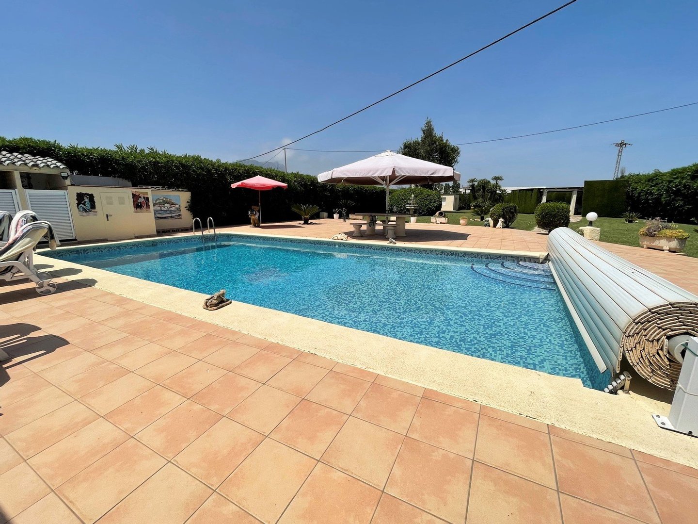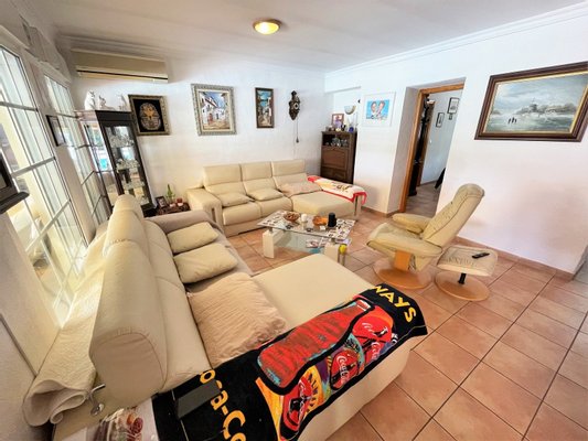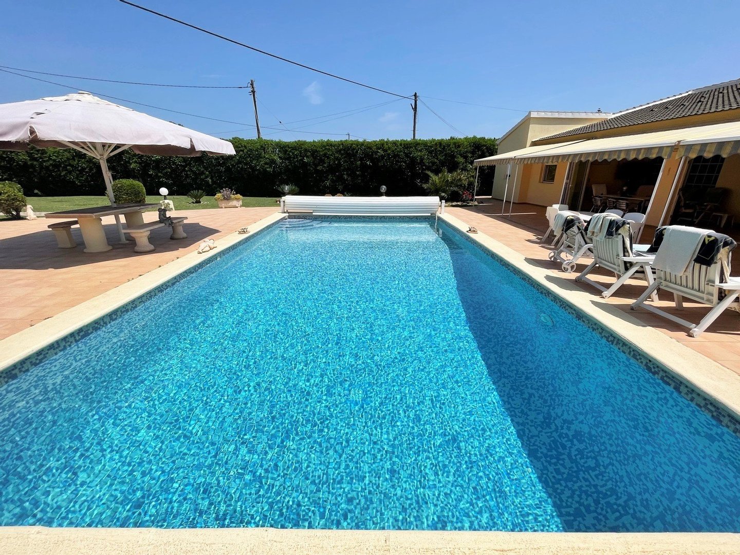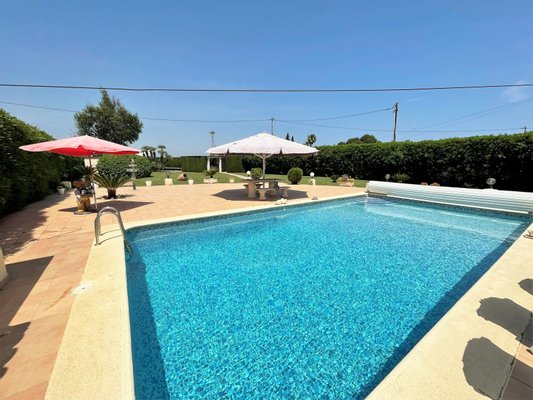 Diese private, ebenerdige, 5-Schlafzimmer Villa hat alles was das Herz begehrt! Das große Grundstück (komplett ummauert) ist ein Traum für jeden Gartenliebhaber. Dazu laden das schöne (beheizbare) Schwimmbad, Außenküche und der tolle Terrassenbereich zum Entspannen ein. Auch im Wintergarten kann man es sich gemütlich machen. Das Haupthaus besteht aus 3 Schlafzimmern, Wohnzimmer, Küche, Badezimmer plus ein Gäste WC. Dazu ist auch an die Gäste gedacht, da man das Haus in zwei komplett getrennte Wohneinheiten trennen kann (mit separatem Eingang). Dort findet man noch mal 2 Schlafzimmer, Bad und WC, und ebenfalls Wohnzimmer mit Küche. Das ganze Haus hat eine Fußbodenheizung und zusätzlich noch Klimageräte. Garage und Carport runden dieses Objekt ab, es fehlt also an nichts!