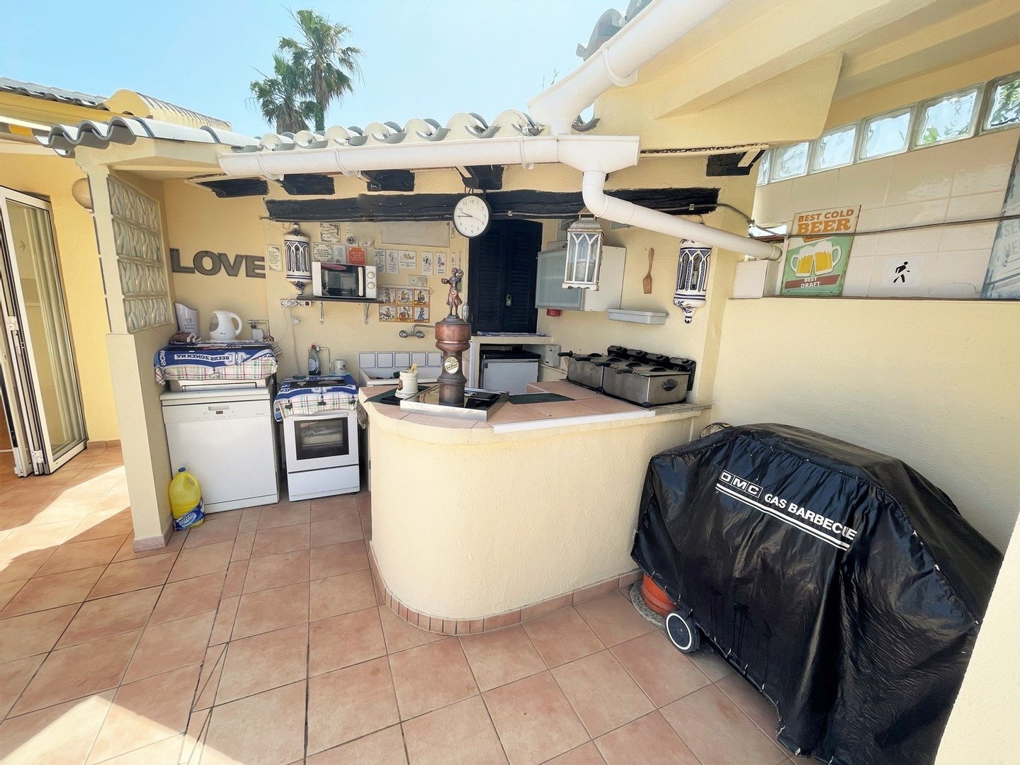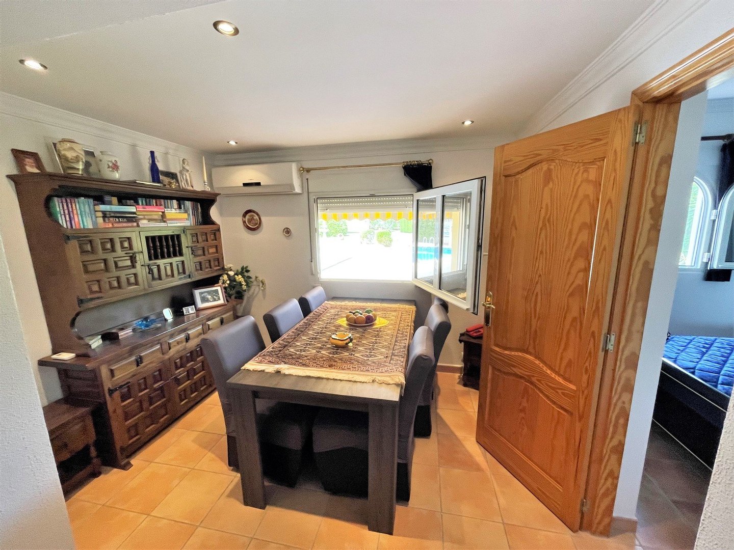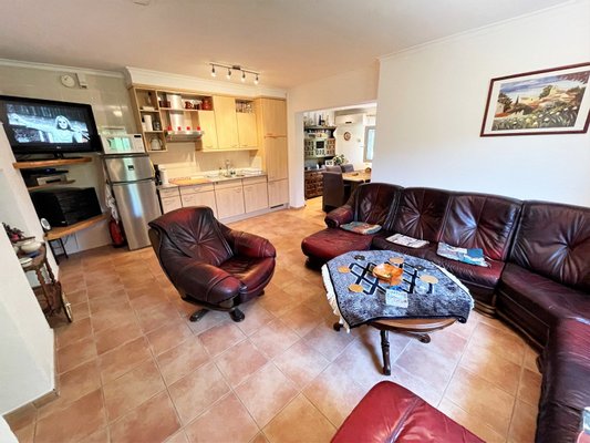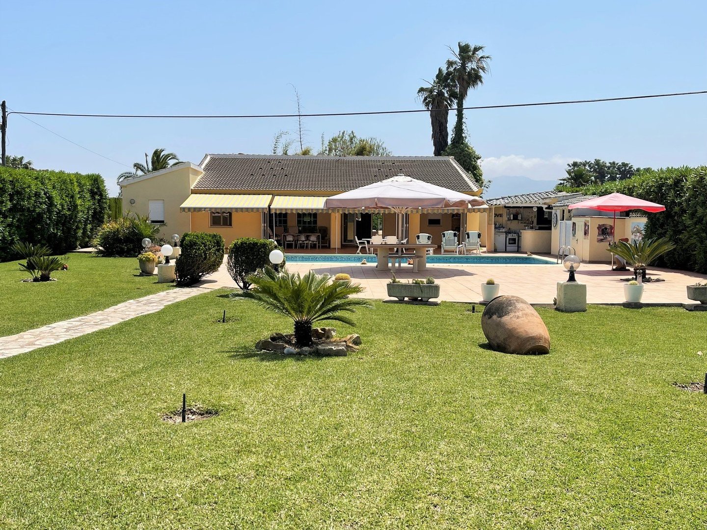 Diese private, ebenerdige, 5-Schlafzimmer Villa hat alles was das Herz begehrt! Das große Grundstück (komplett ummauert) ist ein Traum für jeden Gartenliebhaber. Dazu laden das schöne (beheizbare) Schwimmbad, Außenküche und der tolle Terrassenbereich zum Entspannen ein. Auch im Wintergarten kann man es sich gemütlich machen. Das Haupthaus besteht aus 3 Schlafzimmern, Wohnzimmer, Küche, Badezimmer plus ein Gäste WC. Dazu ist auch an die Gäste gedacht, da man das Haus in zwei komplett getrennte Wohneinheiten trennen kann (mit separatem Eingang). Dort findet man noch mal 2 Schlafzimmer, Bad und WC, und ebenfalls Wohnzimmer mit Küche. Das ganze Haus hat eine Fußbodenheizung und zusätzlich noch Klimageräte. Garage und Carport runden dieses Objekt ab, es fehlt also an nichts!