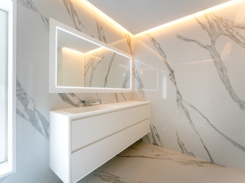 Villa in der letzten Phase der kompletten Renovierung, wobei die Funktionalität und Einfachheit der Räume im Vordergrund steht und der Schwerpunkt auf Modernität und Komfort liegt.
