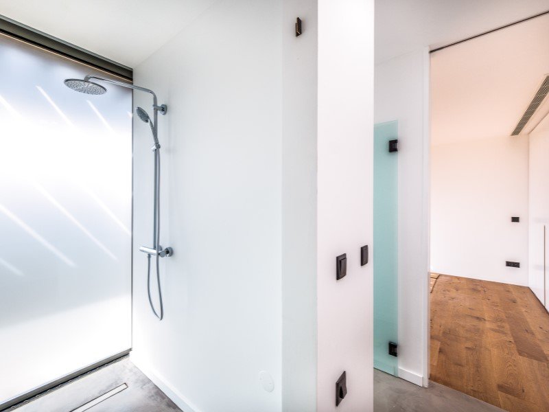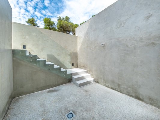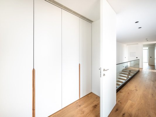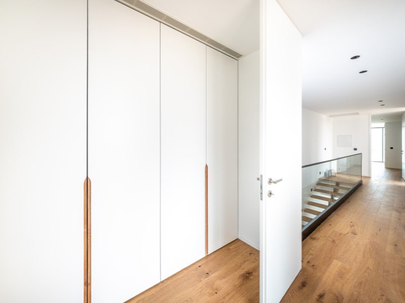 Im ersten Stock ist der private Bereich eine wahre Oase. Die Master-Suite verfügt über einen begehbaren Kleiderschrank und einen privaten Balkon, während eine zweite Suite, ebenfalls mit begehbarem Kleiderschrank, und zwei großzügige Schlafzimmer, beide mit Balkon, für Komfort und Privatsphäre sorgen. Strategisch platzierte Oberlichter garantieren den ganzen Tag über natürliches Licht und machen die Räume noch einladender.