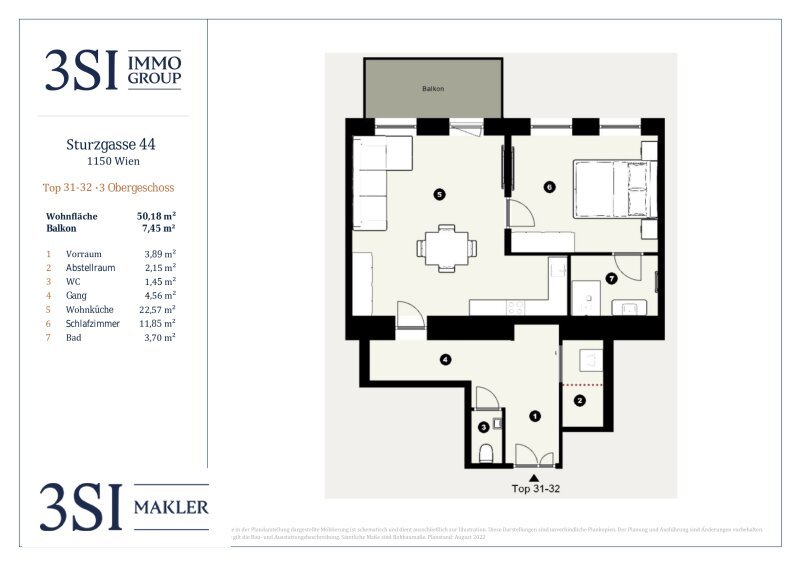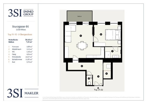 Der guten Ordnung halber halten wir fest, dass, sofern im Angebot nicht anders vermerkt, bei erfolgreichem Abschlussfall eine Provision anfällt, die den in der Immobilienmaklerverordnung BGBI. 262 und 297/1996 festgelegten Sätzen entspricht – das sind 3 % des Kaufpreises zzgl. 20 % USt. Diese Provisionspflicht besteht auch dann, wenn Sie die Ihnen überlassenen Informationen an Dritte weitergeben. Letztlich weisen wir darauf hin, dass wir als Doppelmakler tätig sind und ein familiäres/wirtschaftliches Naheverhältnis zwischen der 3SI Makler GmbH und der Verkäuferin besteht.