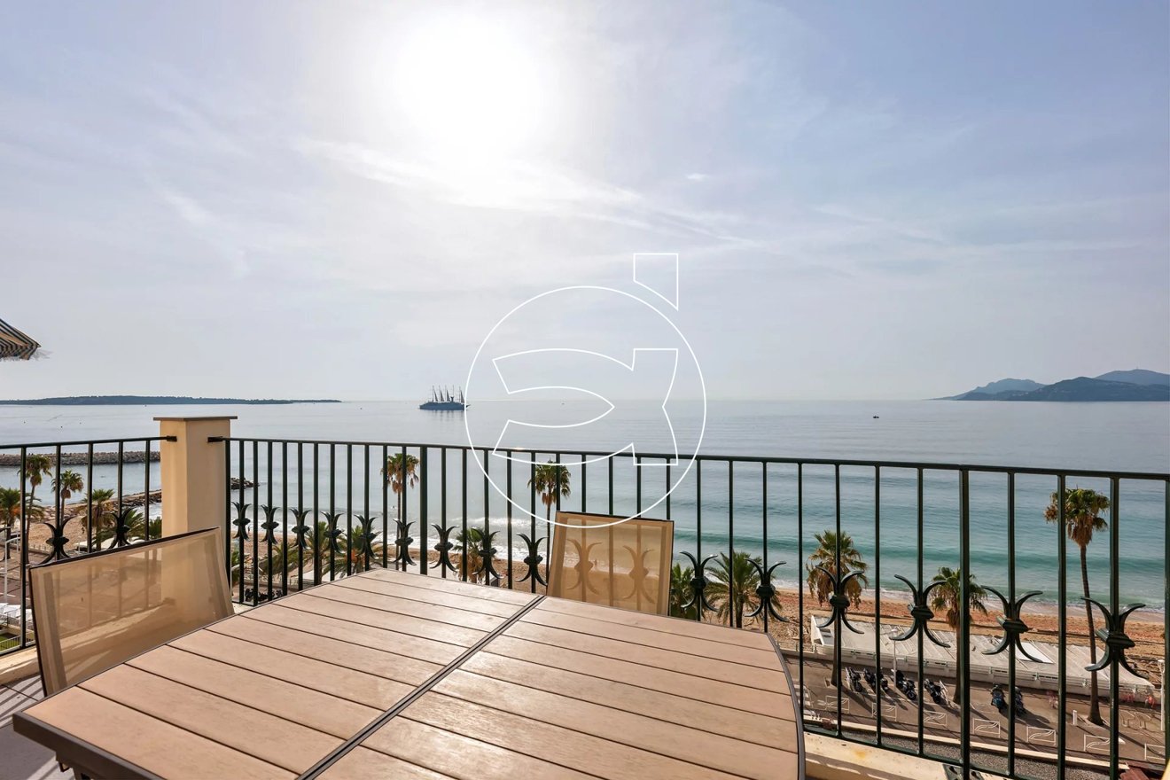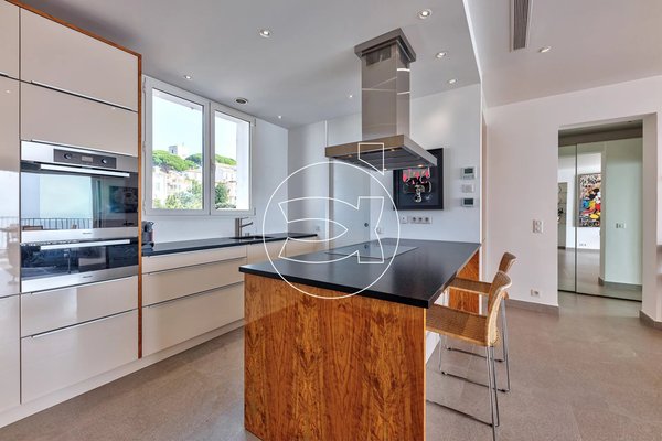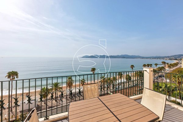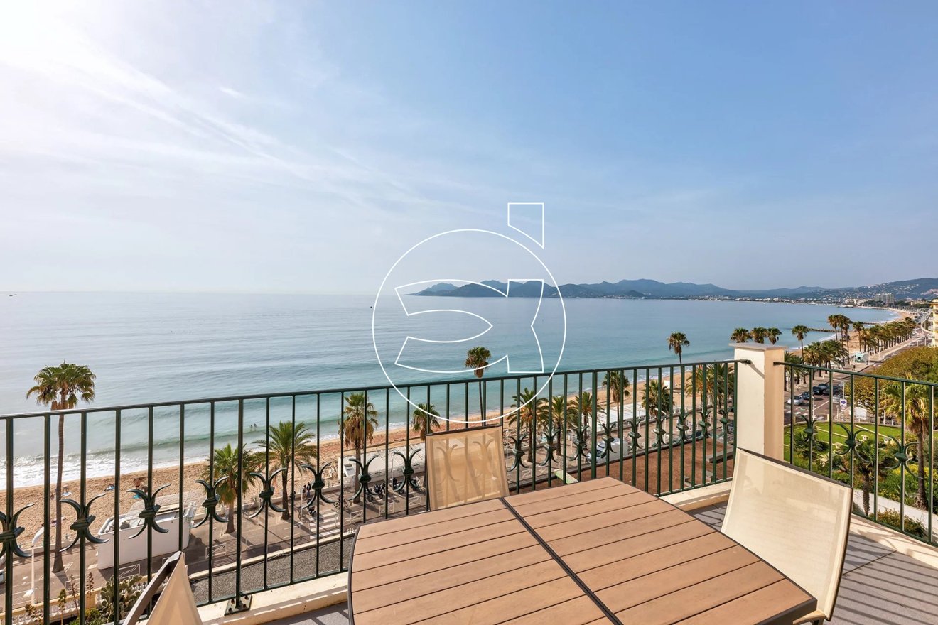 Entdecken Sie diese außergewöhnliche 4-Zimmer-Wohnung im obersten Stockwerk , welche einen atemberaubenden Panoramablick auf das Mittelmeer bietet - in unmittelbarer Nähe der « Croisette » und dem « Palais de Festival ».
