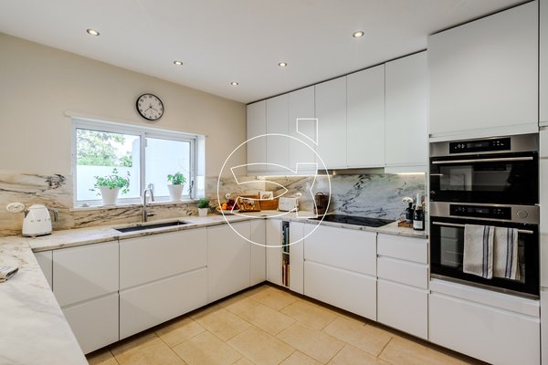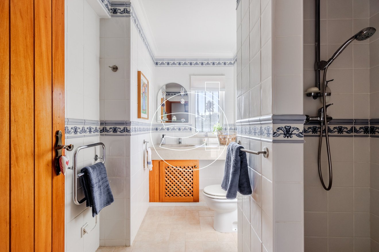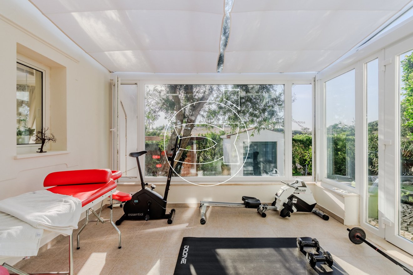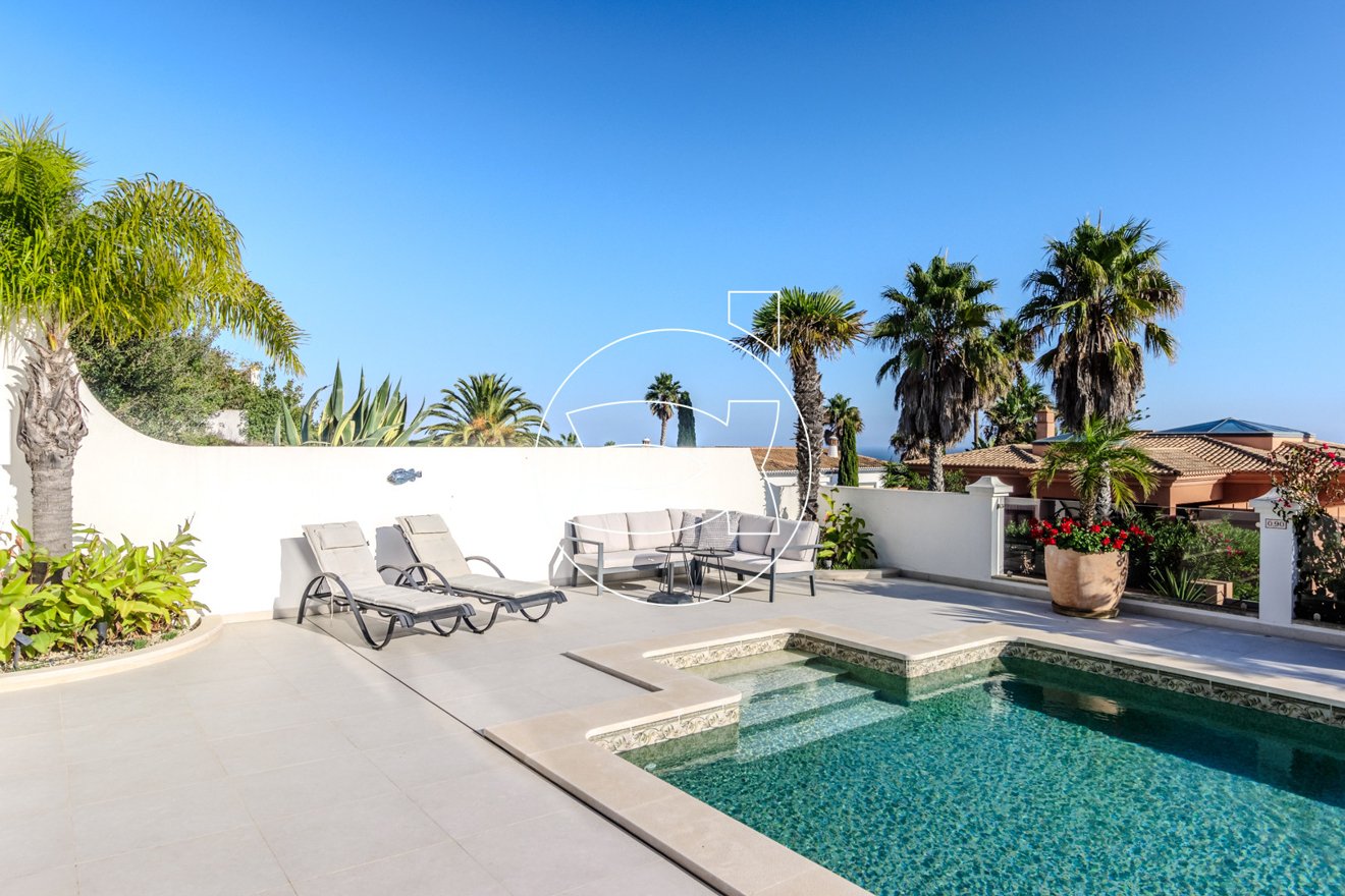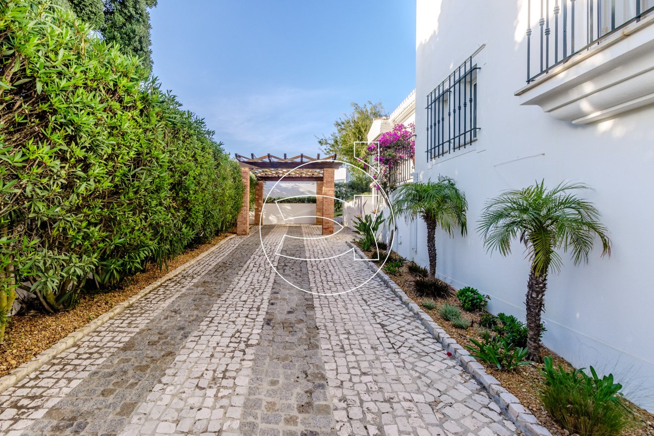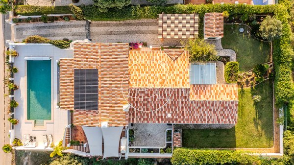 Die Villa ist von einem gepflegten Garten umgeben, mit einem Bewässerungssystem, das sich auch auf die Pflanzentöpfe auf der Terrasse und im Poolbereich erstreckt. Ein Carport und ein elektrisches Haupttor sorgen für zusätzlichen Komfort.