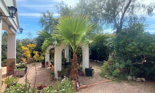 Das Grundstück ist mit Mandel-, Oliven- und Palmenbäumen bepflanzt.