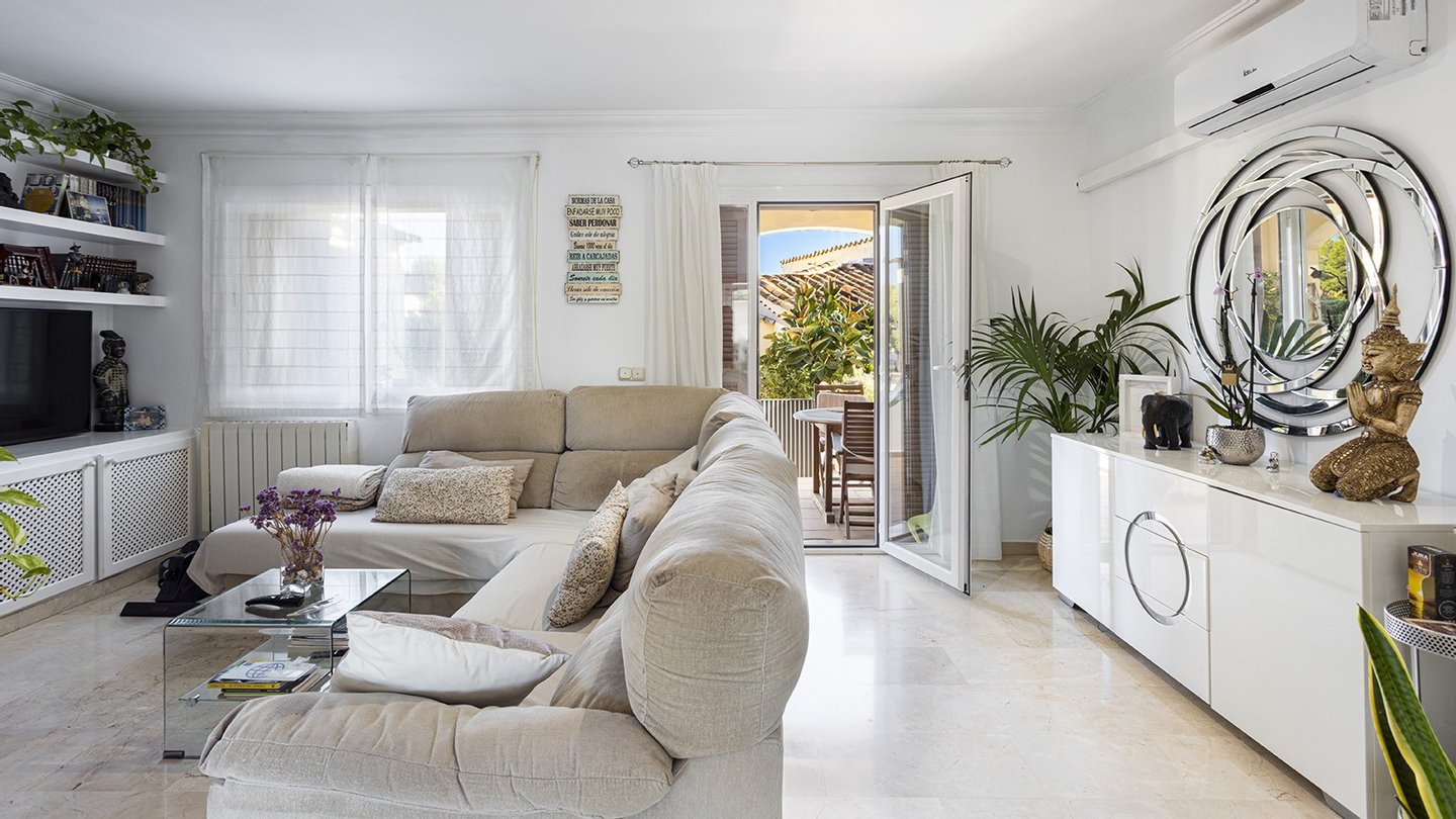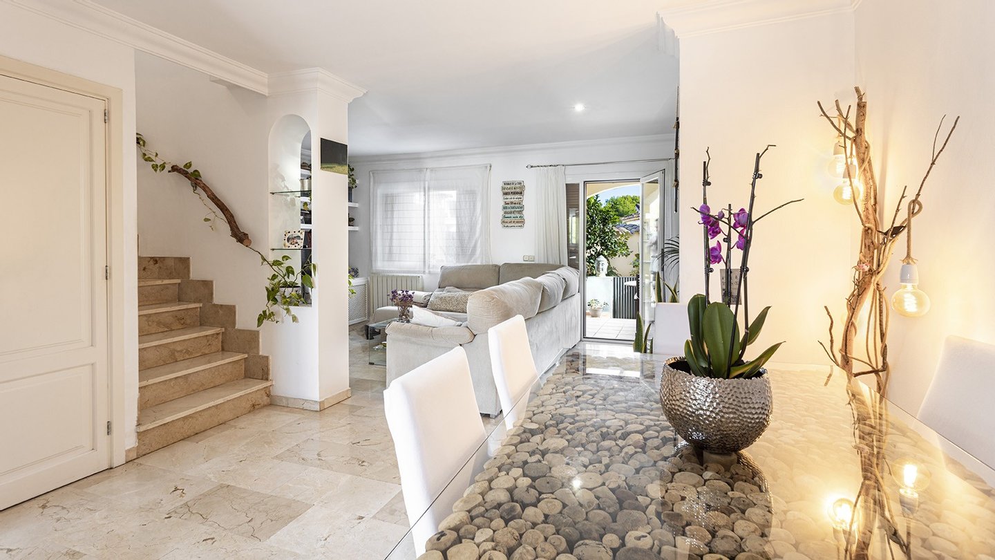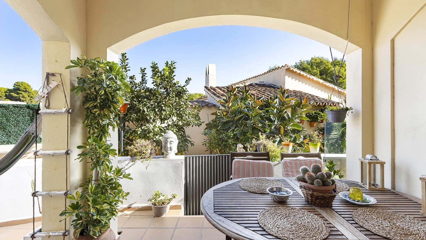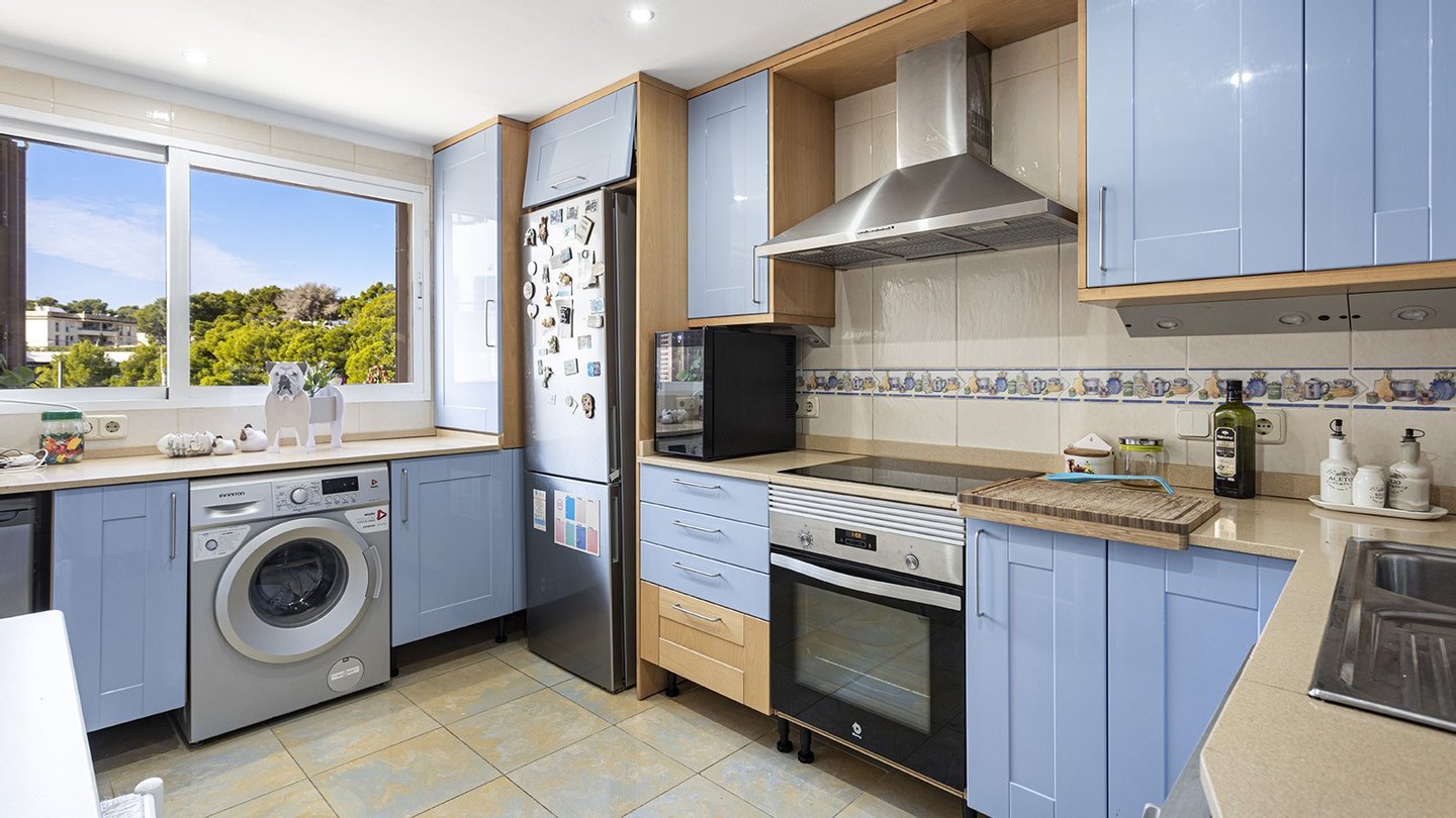 Das lichtdurchflutete Apartment erstreckt sich über eine großzügige Wohnfläche von ca. 107 m2, zuzüglich einer überdachten Terrassenfläche von 11 m2. Im Erdgeschoss erwarten Sie ein einladender Wohnbereich mit Kamin und direktem Zugang zur Terrasse, ein angrenzendes Esszimmer sowie eine vollausgestattete Einbauküche. Das Hauptschlafzimmer mit Meerblick besticht durch ein Bad en Suite und wird ergänzt durch zwei weitere geschmackvoll gestaltete Schlafräume, ein zusätzliches Bad sowie eine praktische Gästetoilette. Zur Ausstattung gehören Zentralheizung, eine Klimaanlage w/k, doppelverglaste Aluminiumfenster mit passenden Blenden, ein edler Marmorboden sowie Anschlussmöglichkeiten wie Telefon, SAT-TV und Glasfaser. Einbauschränke bieten Ihnen zusätzlichen Stauraum und vieles mehr! Abgerundet wird dieses einmalige Immobilienangebot durch einen privaten PKW-Stellplatz. Gönnen Sie sich das Vergnügen, in dieser außergewöhnlichen Oase im Herzen Mallorcas zu leben.