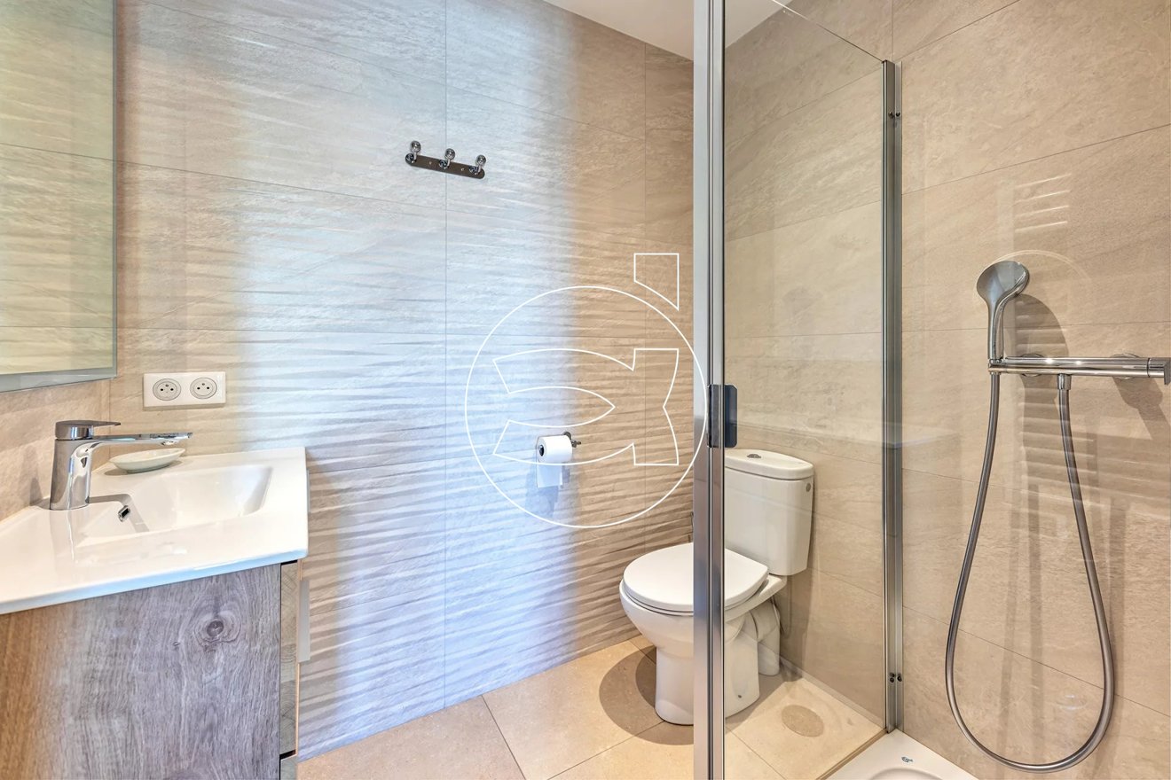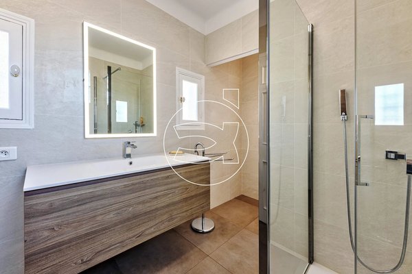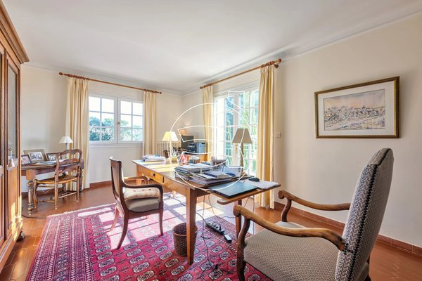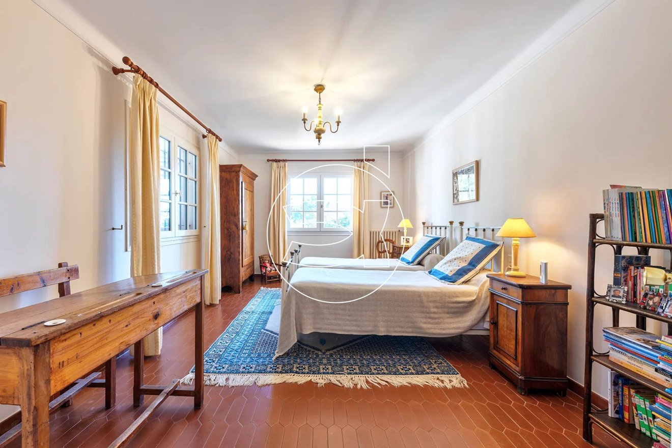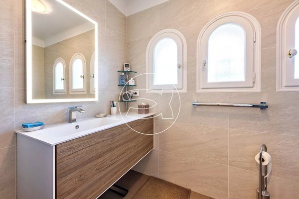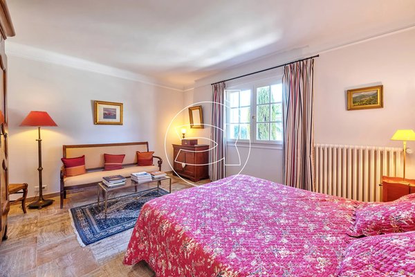 Im Obergeschoss befindet sich der Südflügel mit 3 großen Schlafzimmern, darunter eines mit Meerblick, alle mit einer Terrasse. Zwei Badezimmer mit WC und zahlreiche Einbauschränke vervollständigen diesen Bereich. Der Ostflügel, über einen separaten Eingang zugänglich, kann als selbständige Wohneinheit genutzt werden. Er besteht aus einer Küche, einem Wohnzimmer, das auf eine Terrasse mit Meerblick führt und 2 Schlafzimmern, von denen jedes über ein eigenes Badezimmer und WC verfügt.