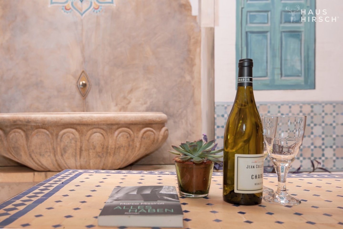 Die schöne, voll ausgestattete Küche lädt zum gemeinsamen Kochen und Genießen ein. Das Highlight des Hauses ist der liebevoll gestaltete Innenhof mit einer einzigartigen Wandmalerei, die für eine besondere Atmosphäre sorgt – ideal für entspannte Stunden im Freien.