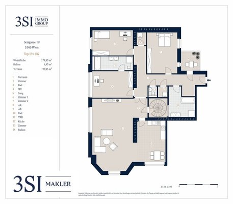 Luxus-Dachgeschoß-Wohnung in exklusiver Lage – 178 m² mit Dachterrasse und Panoramablick über Wien