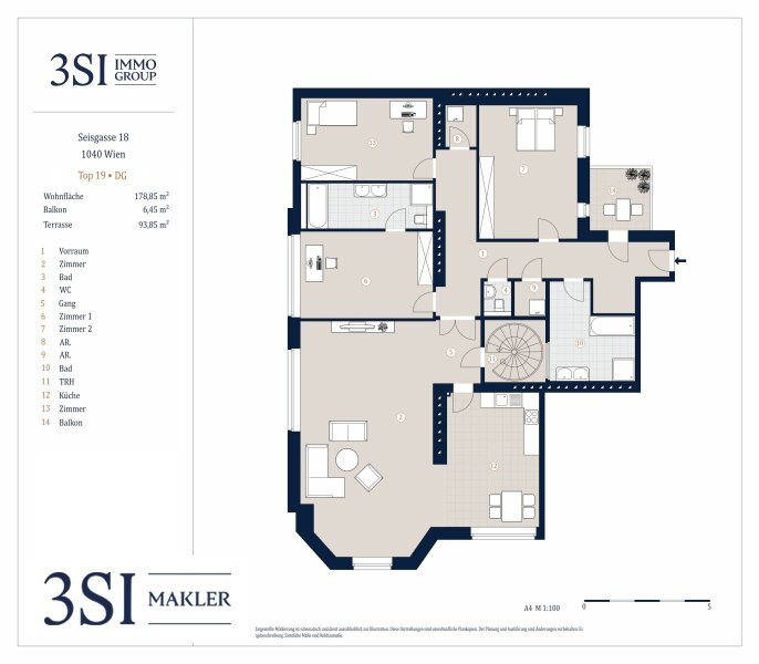 Das Dachgeschoß bietet drei exklusive Dachgeschosswohnungen, die höchsten Wohnansprüchen gerecht werden. Diese luxuriösen Neubauwohnungen zeichnen sich durch ihre großzügigen Raumkonzepte, elegante Ausstattung und atemberaubenden Ausblicke aus – ideal für anspruchsvolle Käufer, die das Besondere suchen. Die Wohnungen überzeugen nicht nur durch ihre perfekte Lage im Herzen von Wien, sondern auch durch ihre Ausstattung auf höchstem Niveau. Jede Einheit bietet Ihnen exklusiven Komfort und ein Wohngefühl, das keine Wünsche offen lässt.