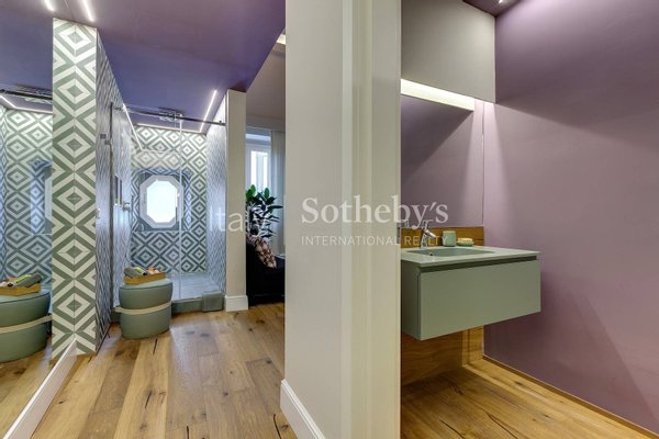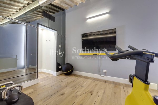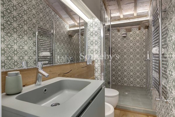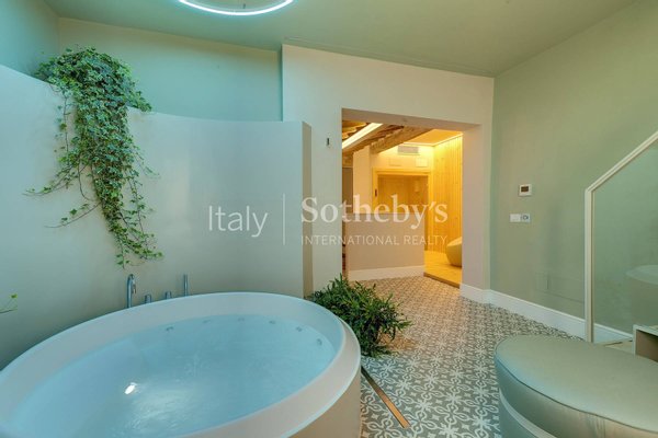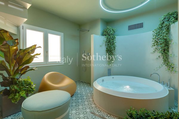From the SPA, a few more steps take you to a stunning habitable terrace, furnished with relaxation seating, sun loungers, an outdoor shower, and a built-in mini-fridge. Here, you can enjoy breathtaking views of Florence's rooftops and iconic landmarks, including Brunelleschi's Dome and Giotto's Bell Tower. It's the perfect place to unwind and immerse yourself in the beauty of the Florentine sky.