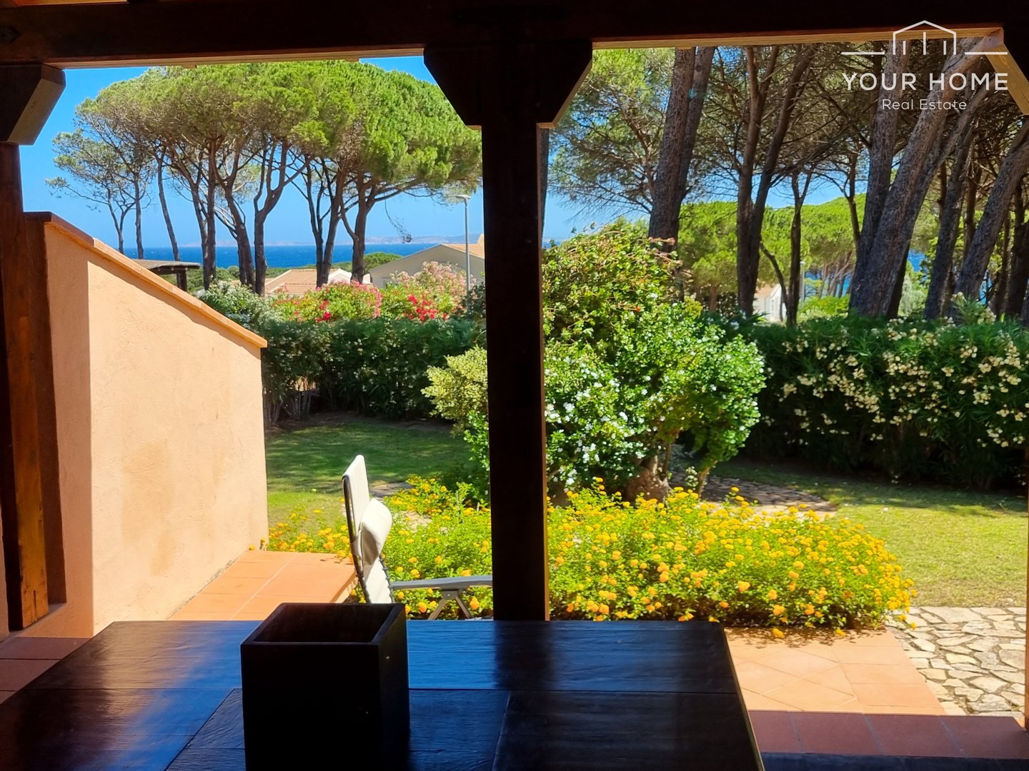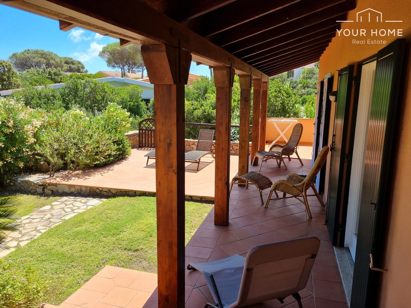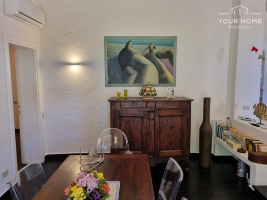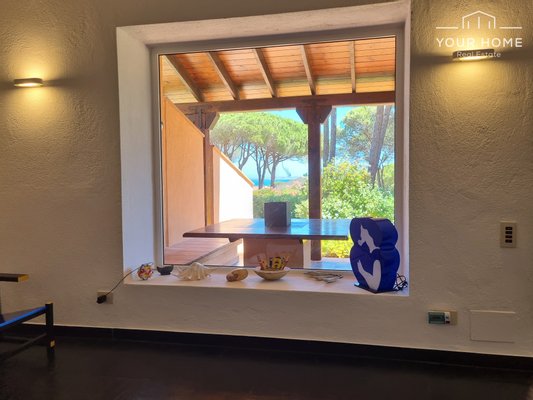 Der emotionalste Bereich ist sicherlich die Veranda mit Meerblick an der Vorderseite der Villa, von der aus man auch den wunderschönen Garten und die majestätischen umliegenden Bäume überblickt. Die gleiche Aussicht kann dank der großen Fenster auch vom Wohnzimmer aus genossen werden. sowie einen herrlichen Meerblick von der kostbaren Sonnenterrasse (erreichbar über die Seitentreppe), die einen Teil der Villa selbst bedeckt.