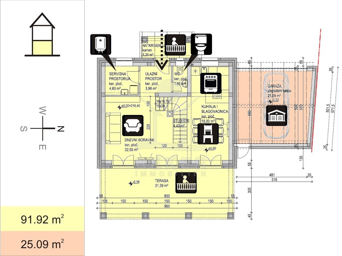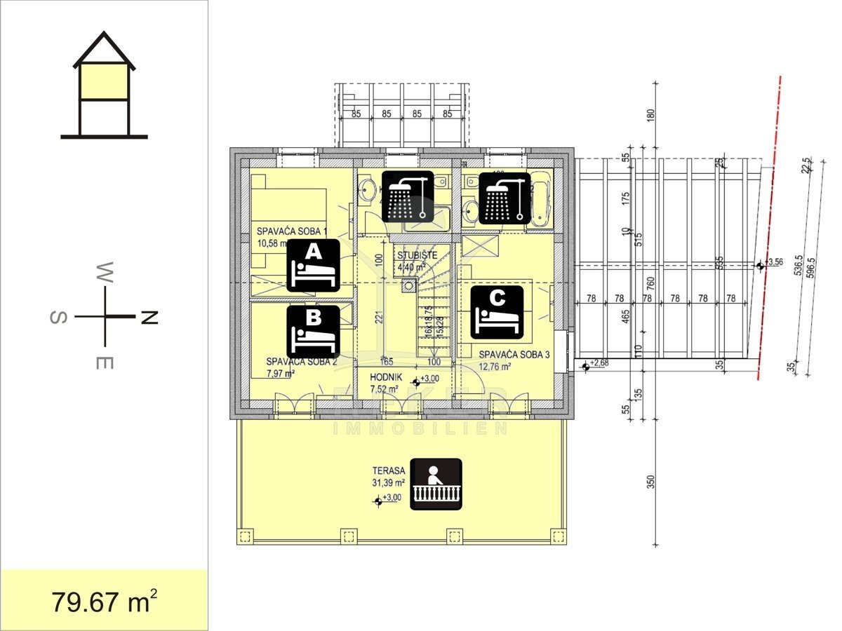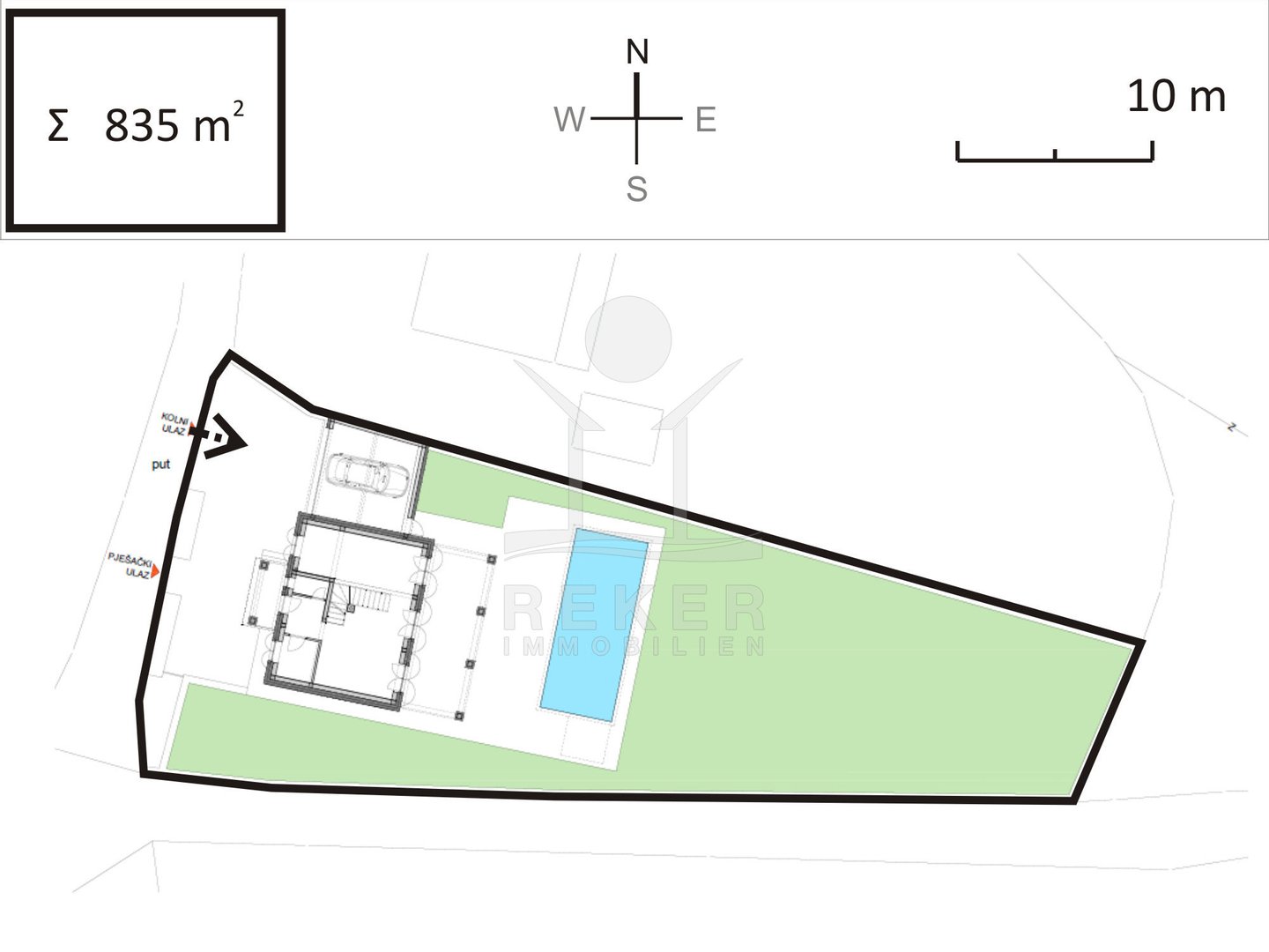 Das Wohnhaus bietet eine Wohnfläche von rund 172 m². Das Haus besteht aus dem Erdgeschoss mit einer Fläche von 91,92 m2 und dem 1. Stock mit einer Fläche von 79,67 m2. Genießen Sie einen fantastischen Ausblick auf das Meer von der Terrasse im Obergeschoss.