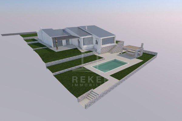 Frei stehender Bungalow mit Panorama-Meerblick & großem Garten auf Krk in Njivice