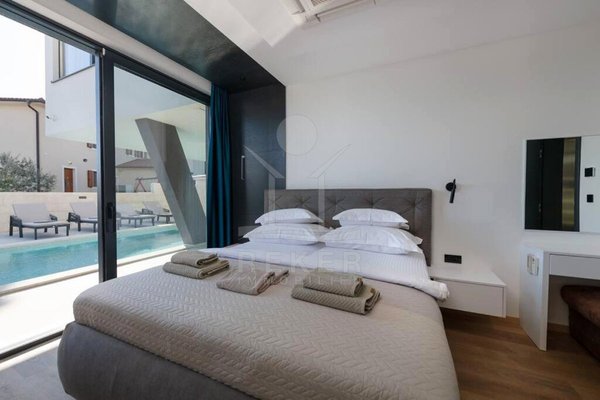 Willkommen in Ihrer eigenen Oase des Luxus an der Küste von Medulin! Diese atemberaubende Luxusvilla wird selbst die anspruchsvollsten Käufer beeindrucken. Mit einem spektakulären Meerblick und Swimmingpool können Sie jeden Tag wie im Paradies leben. Entspannen Sie im Spa- und Wellnessraum mit Sauna und Whirlpool und lassen Sie den Alltagsstress hinter sich. Nur wenige Schritte vom Meer und Strand entfernt, bietet diese exklusive Neubauvilla eine einzigartige Gelegenheit, direkt am Wasser zu wohnen. Vollständig möbliert und mit höchsten Standards ausgestattet, wartet diese Villa darauf, Ihr neues Zuhause zu werden. Gönnen Sie sich den Luxus, den Sie verdienen, und investieren Sie in Ihr Glück - diese Villa ist die perfekte Wahl!