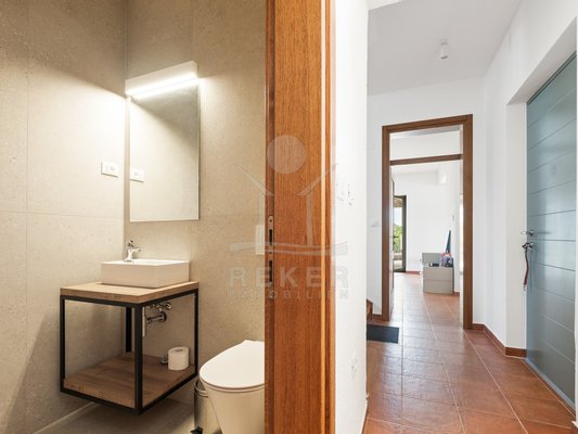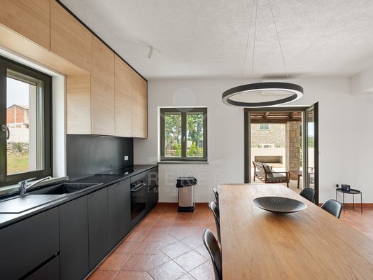 Erleben Sie die Schönheit Istriens in all ihrer Pracht in dieser modernen Steinhaus-Villa in Svetvinčenat, in der Nähe von Rovinj! Dieses atemberaubende Anwesen lässt keine Wünsche offen und bietet Ihnen die perfekte Kombination aus modernem Komfort und traditionellem Charme. Der großzügige Pool und der gepflegte Garten laden zum Entspannen im Freien ein, während die Outdoorküche perfekt ist für gesellige Grillabende mit Freunden und Familie. Tauchen Sie ein in die malerische Umgebung und genießen Sie das mediterrane Lebensgefühl an der kroatischen Küste. Ein wahres Paradies für alle, die das Meeresrauschen lieben.