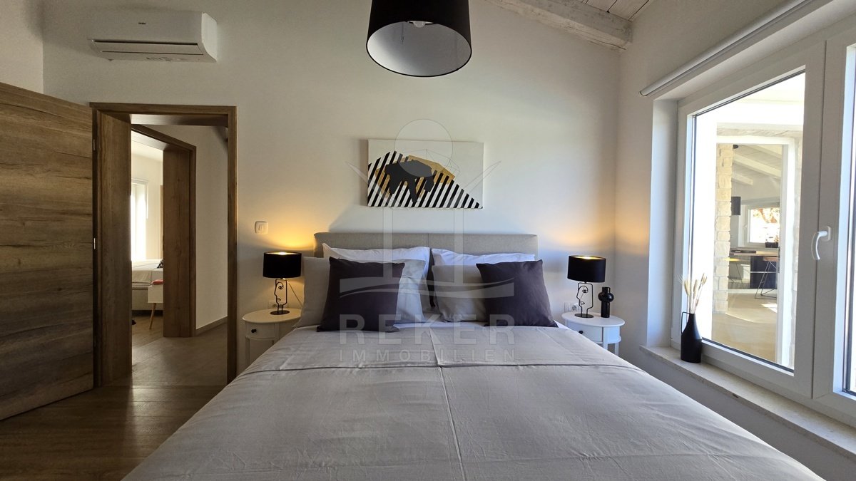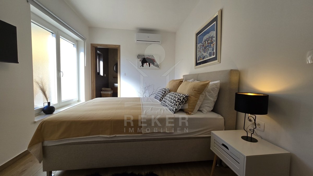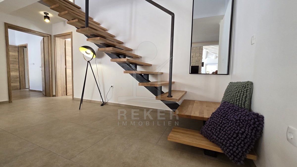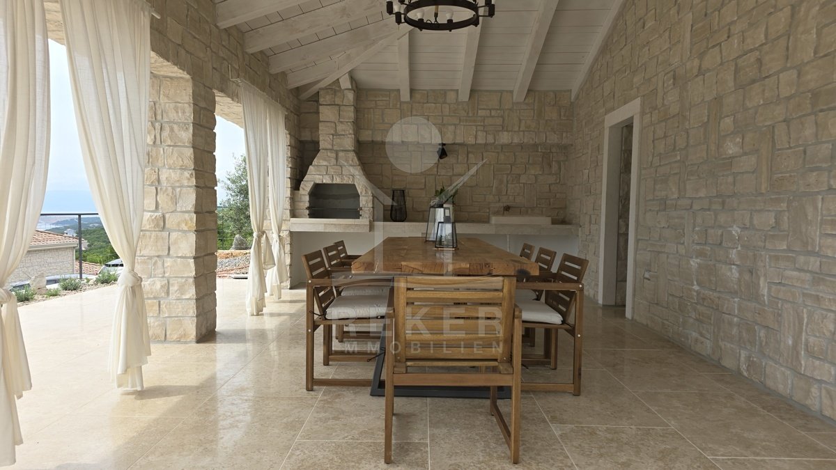 Tauchen Sie ein in den Luxus und den atemberaubenden Panoramablick dieser modernen Steinhausvilla in Jadranovo, Kvarner Bucht. Das Anwesen besticht durch seine luxuriöse Ausstattung und moderne Einrichtung. Genießen Sie erholsame Tage im beheizten