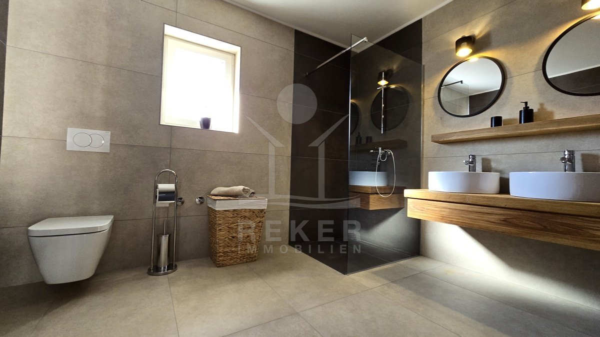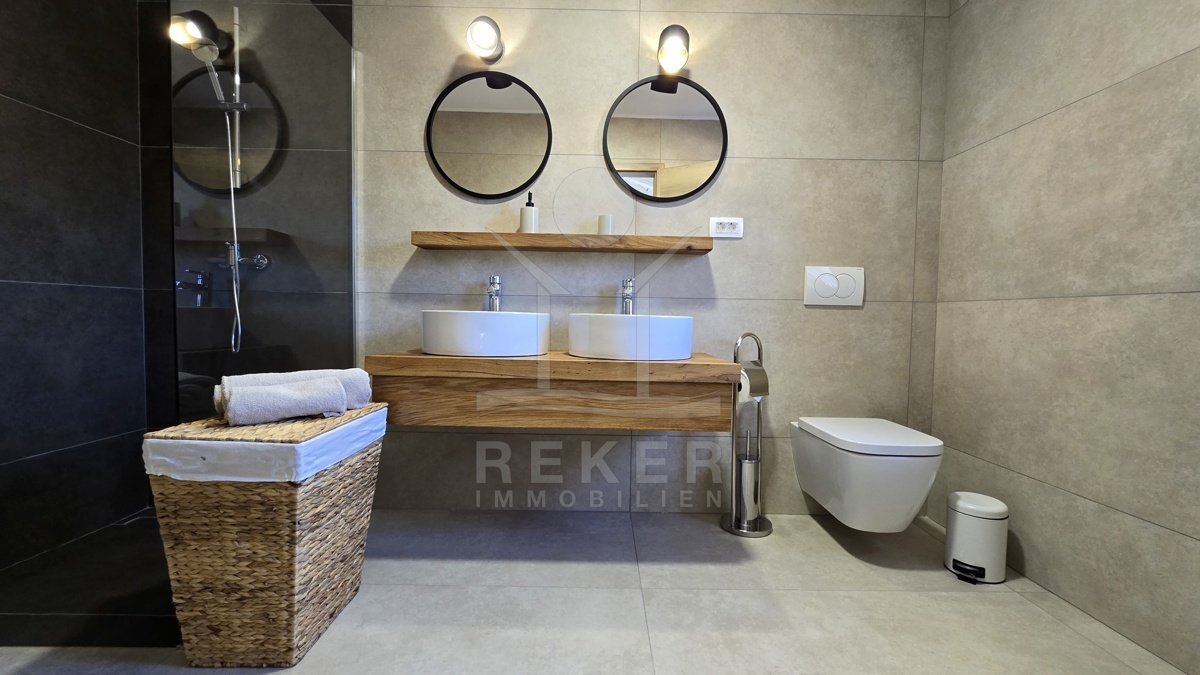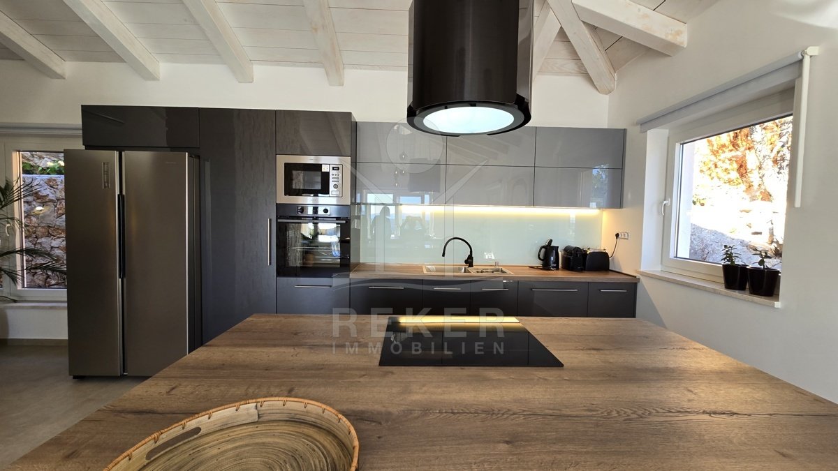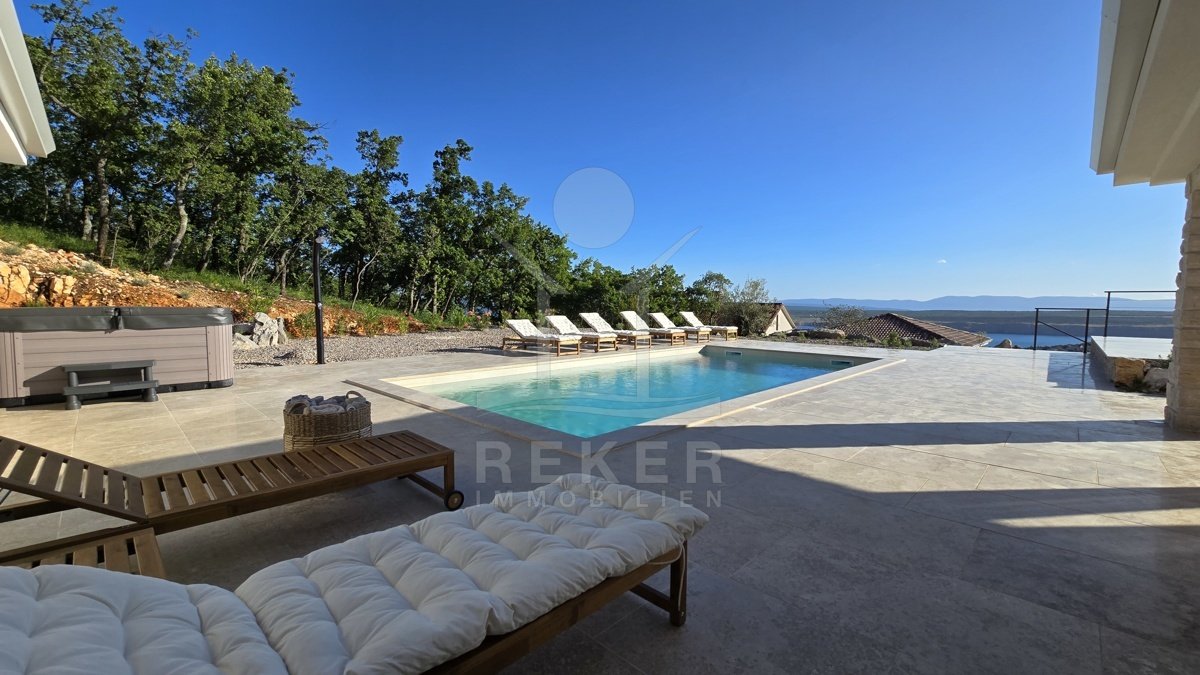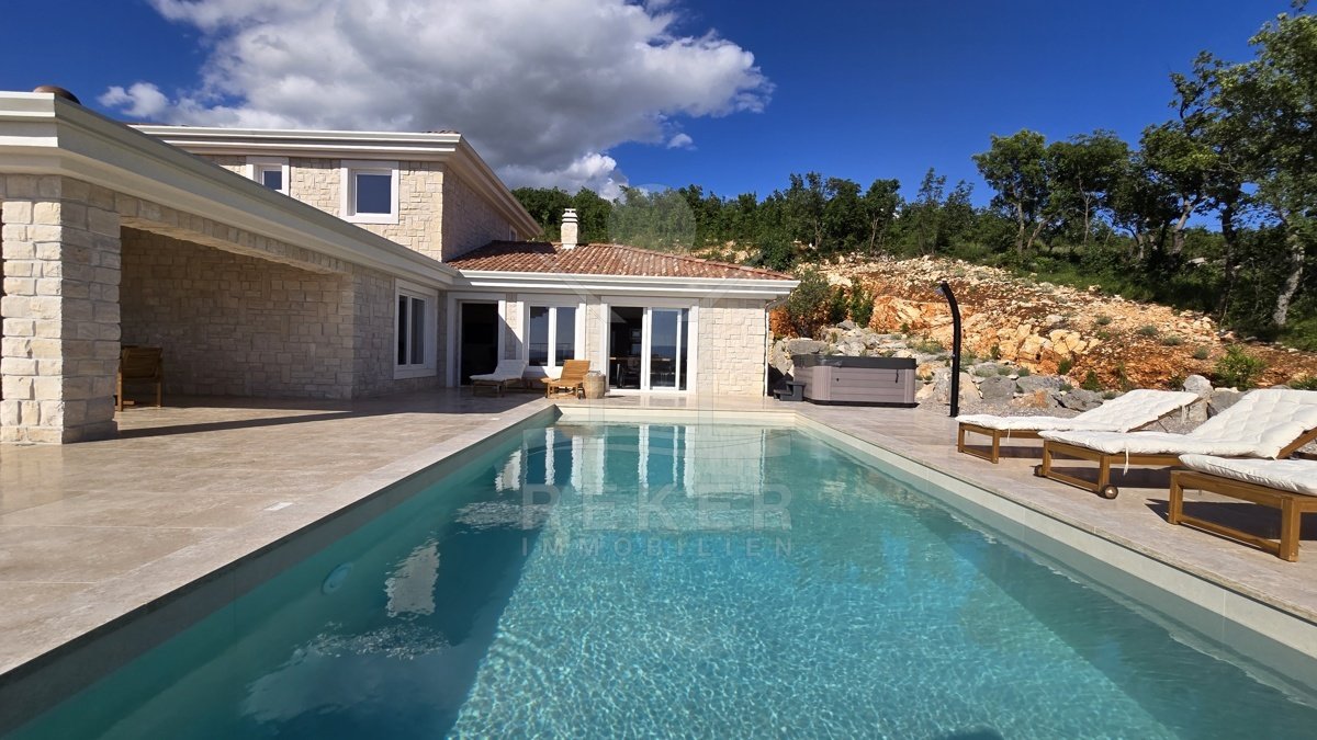 Tauchen Sie ein in den Luxus und den atemberaubenden Panoramablick dieser modernen Steinhausvilla in Jadranovo, Kvarner Bucht. Das Anwesen besticht durch seine luxuriöse Ausstattung und moderne Einrichtung. Genießen Sie erholsame Tage im beheizten Pool oder entspannen Sie im Jacuzzi mit Blick auf das glitzernde Meer. Diese Villa ist perfekt für anspruchsvolle Käufer, die Komfort, Eleganz und Stil schätzen. Erleben Sie hier einen Lebensstil, der keine Wünsche offen lässt.