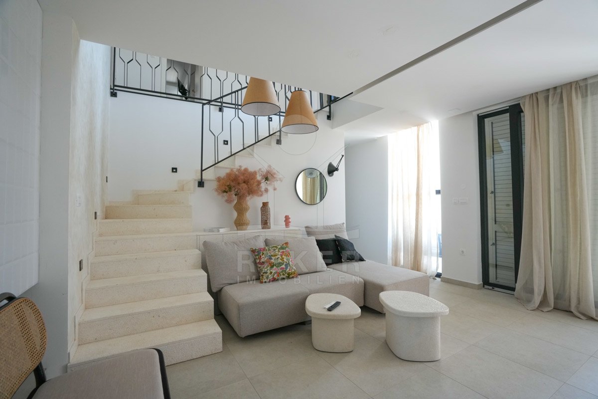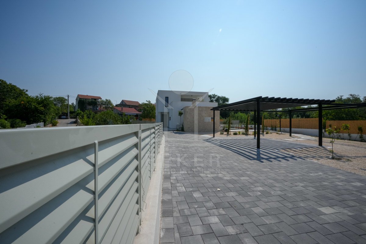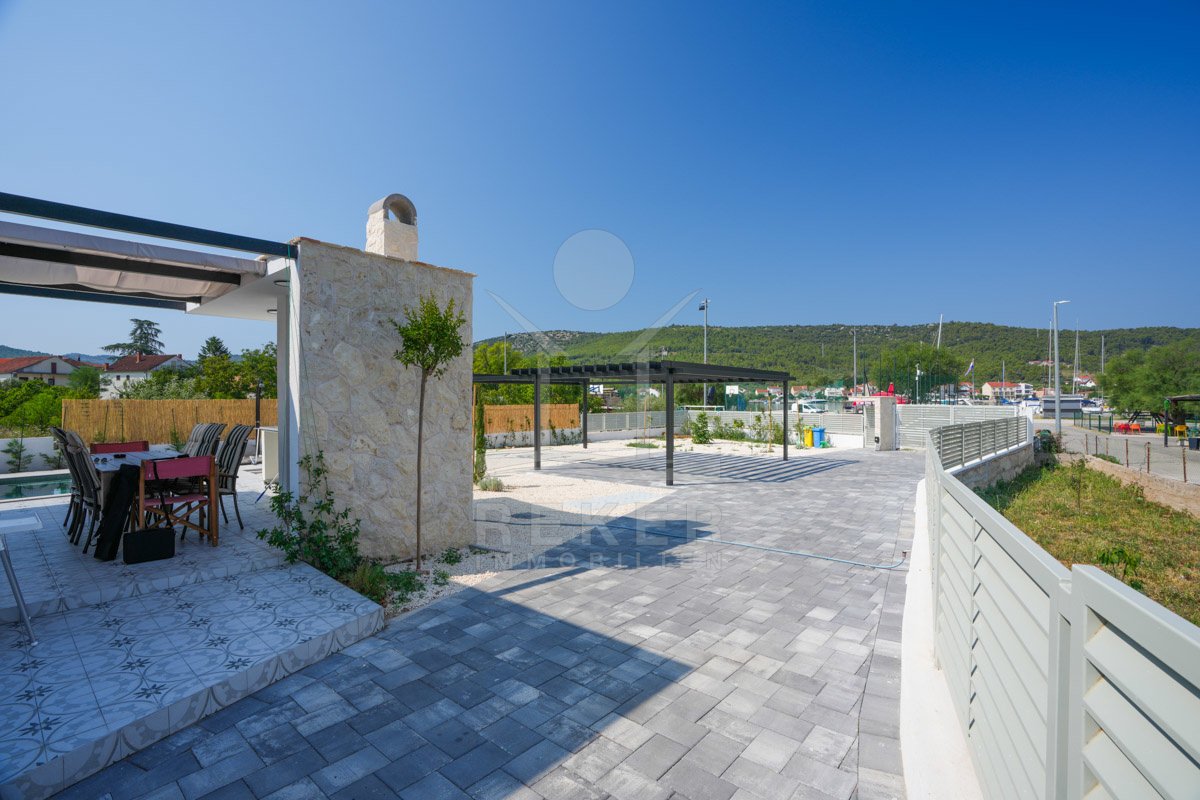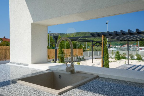 Diese exklusive Villa in Bilice wird Ihre Erwartungen übertreffen. Mit einem modernen Designkonzept gestaltet, bietet das Anwesen nicht nur einen Außenpool, sondern auch eine traumhafte Outdoorküche und einen großzügigen Garten. Hier können Sie das mediterrane Küstenleben in vollen Zügen genießen, nur wenige Schritte vom Meer entfernt. Die erstklassige Lage garantiert Ruhe und Erholung, während Sie dennoch die Annehmlichkeiten der Küste in Reichweite haben. Verpassen Sie nicht die Chance, diese wunderschöne Neubauvilla zu erwerben und Ihren Traum vom perfekten Zuhause wahr werden zu lassen. Kontaktieren Sie uns noch heute, um diesen Schritt zu Ihrem neuen Lebenskapitel zu machen.