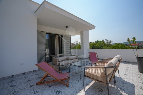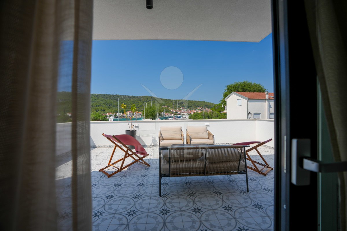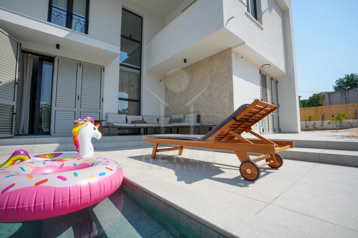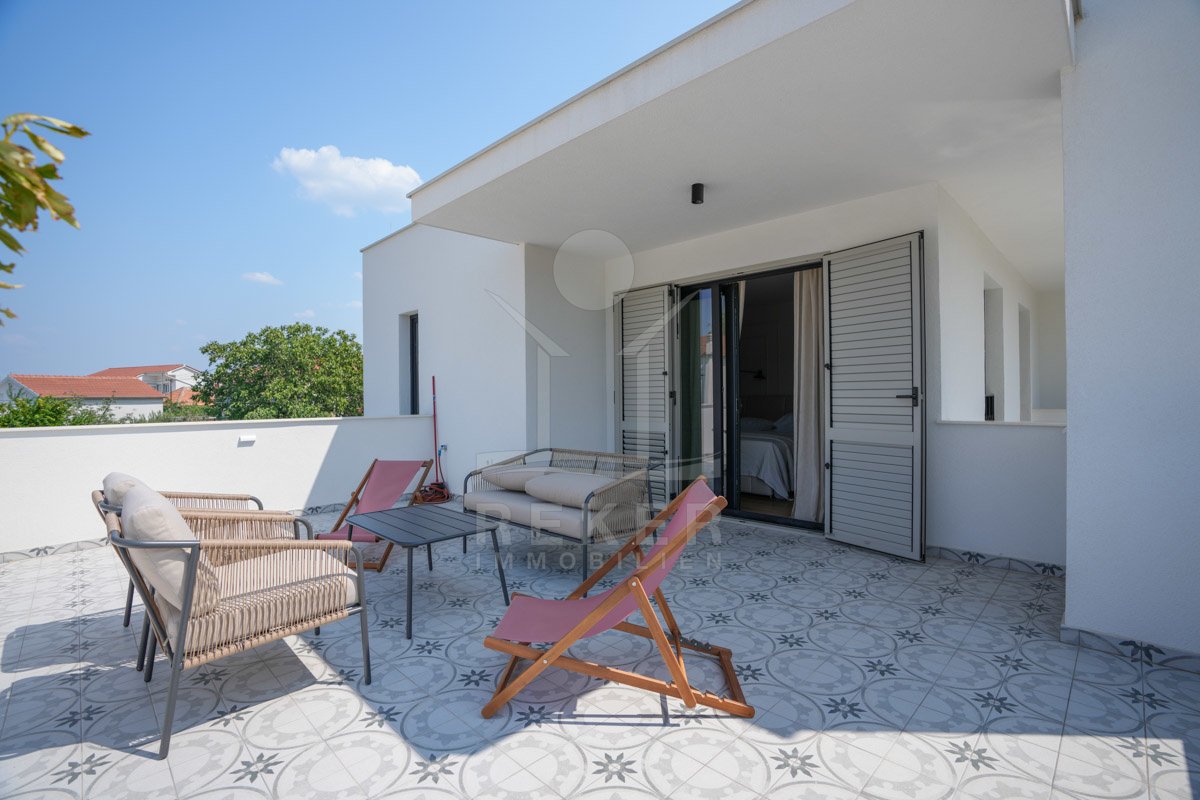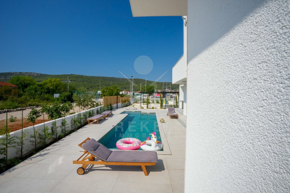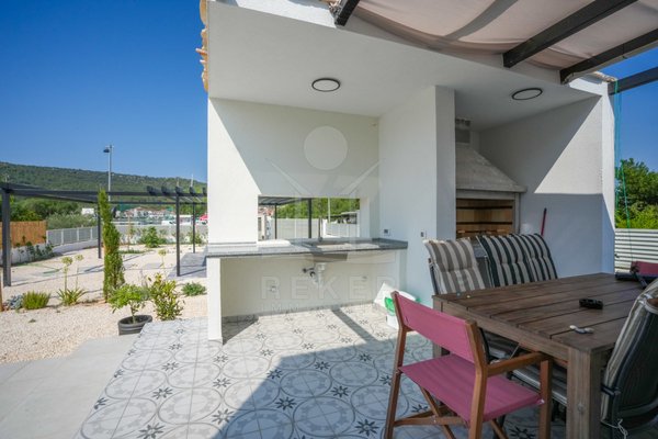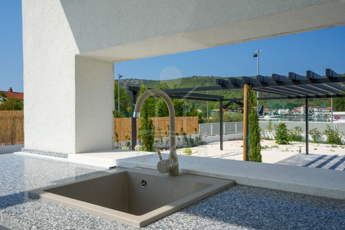 Diese exklusive Villa in Bilice wird Ihre Erwartungen übertreffen. Mit einem modernen Designkonzept gestaltet, bietet das Anwesen nicht nur einen Außenpool, sondern auch eine traumhafte Outdoorküche und einen großzügigen Garten. Hier können Sie das