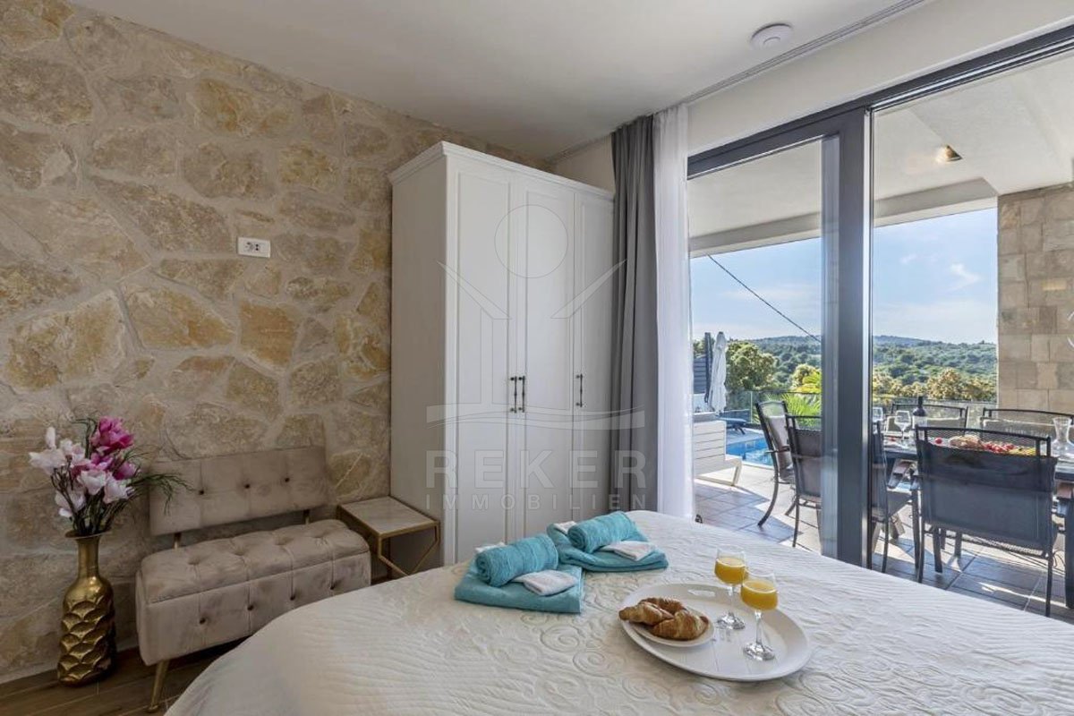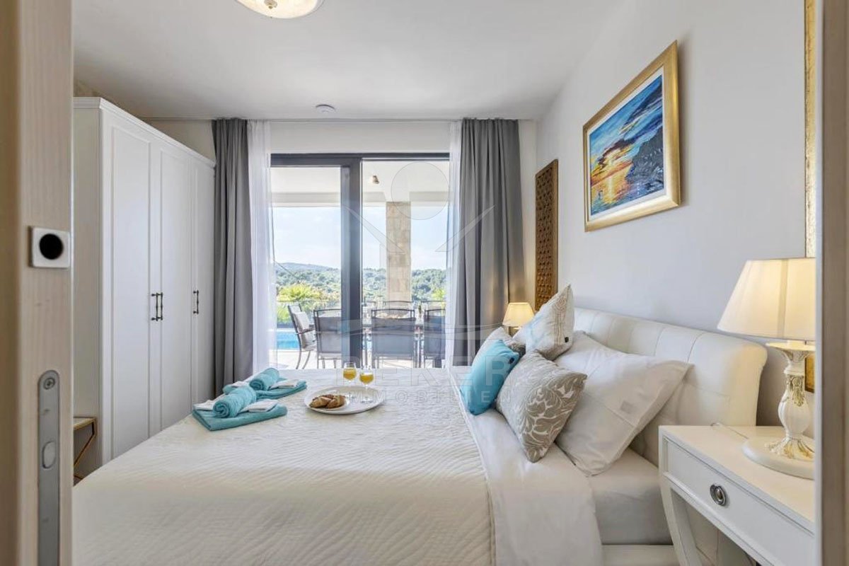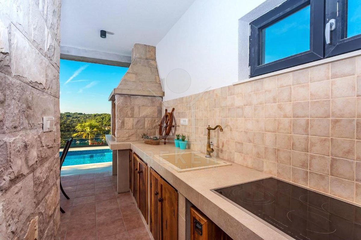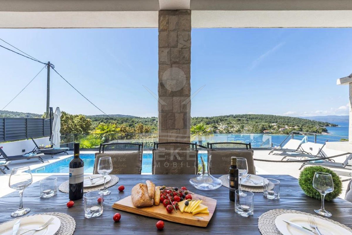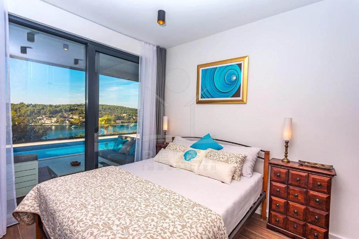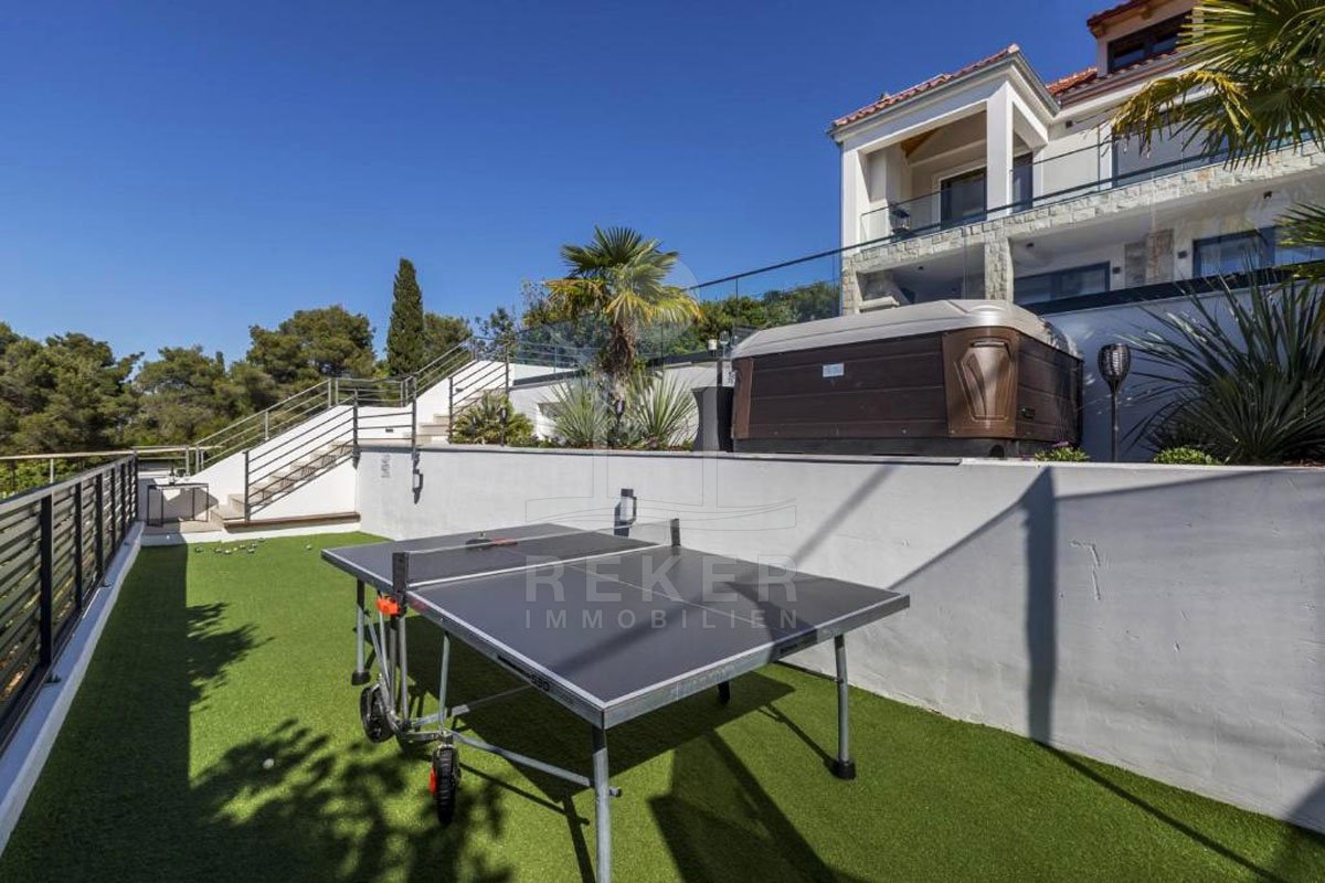 Erleben Sie ein Stück vom Paradies in dieser luxuriösen Villa auf der atemberaubenden Insel Solta! Diese exklusive Immobilie bietet nicht nur einen beheizten Pool und Whirlpool, sondern auch einen Panorama-Meerblick, der Sie jeden Tag aufs Neue verzaubern wird. Die Top-Lage in einer malerischen Bucht nur wenige Schritte vom Meer entfernt verspricht ein Leben voller Inspiration und Möglichkeiten. Die komplett möblierte und eingerichtete Luxusvilla ist nicht nur ein Ort zum Wohnen, sondern auch eine hervorragende Investition im bereits etablierten Tourismussektor der Region. Tauchen Sie ein in die märchenhafte Natur von Solta und lassen Sie sich von diesem einzigartigen Lebensstil begeistern. Willkommen in Ihrem neuen Traumdomizil!