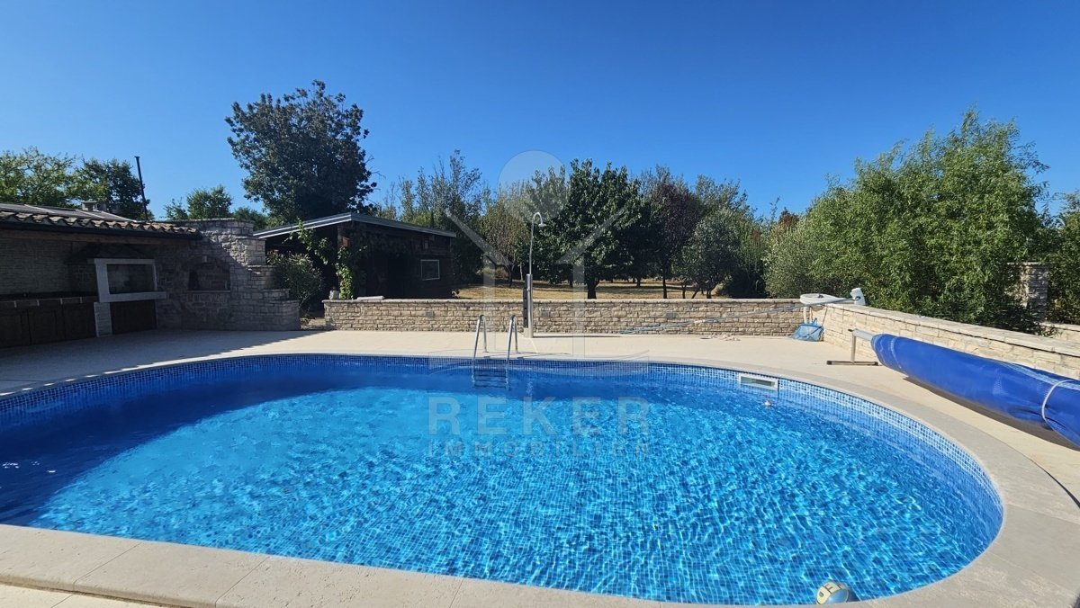Erleben Sie das mediterrane Lebensgefühl in dieser bezaubernden Villa in Višnjan, nur einen Katzensprung von Poreč entfernt! Diese fantastische Villa bietet nicht nur einen Garten und einen Pool, sondern auch 2 separate Wohnungen, die vielfältige Nutzungsmöglichkeiten bieten. Von der ersten Etage aus können Sie einen atemberaubenden Meerblick genießen, der Ihnen jeden Tag ein Lächeln ins Gesicht zaubert. Die großzügige Terrasse und die sommerliche Küche mit Grill laden zu geselligen Abenden mit Familie und Freunden ein. Entdecken Sie das Potenzial dieses Anwesens und verwandeln Sie es in Ihr persönliches mediterranes Paradies. Tauchen Sie ein in die Schönheit der Umgebung und genießen Sie den Sommer wie nie zuvor.
