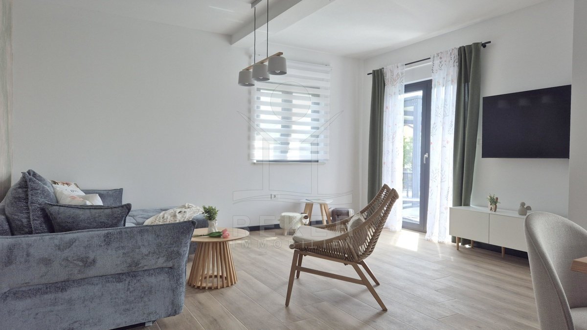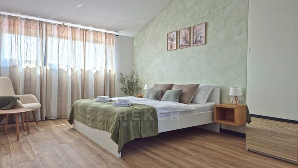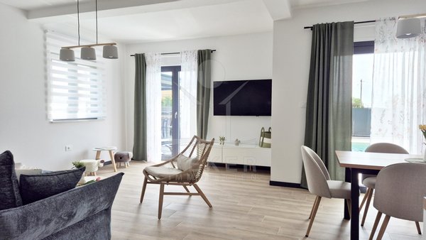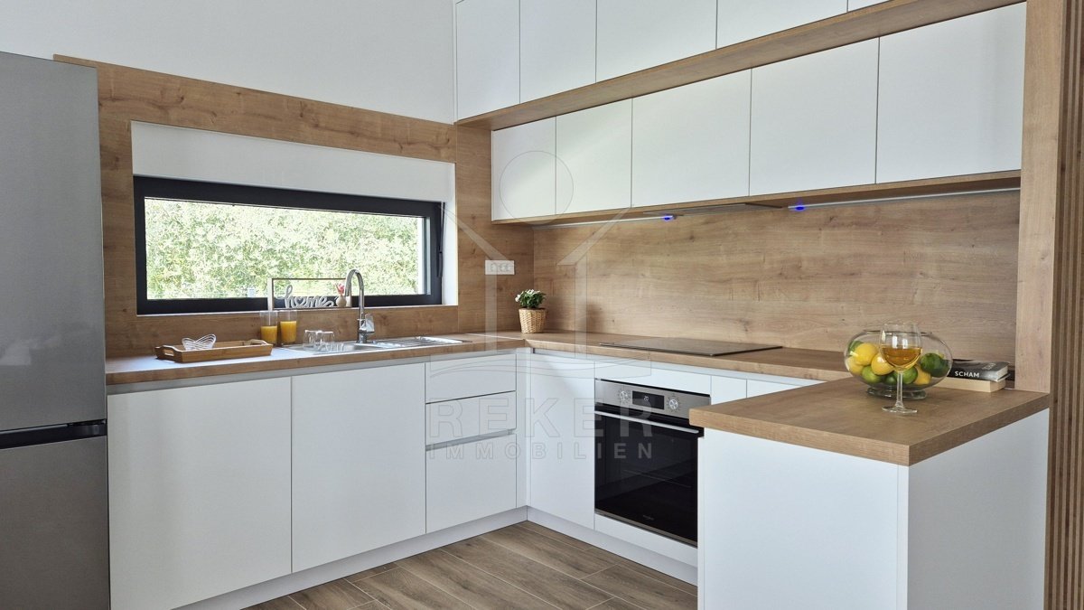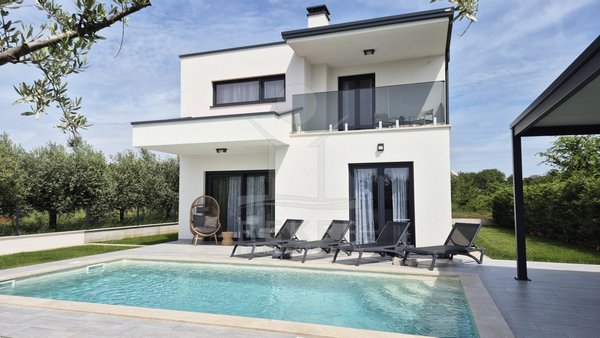 Diese Villa nahe Poreč bietet alles, was Sie für ein komfortables Leben oder entspannten Urlaub brauchen: moderner Neubau, schöner Garten, privater Pool – und das Beste: Sie ist komplett möbliert und bezugsbereit.