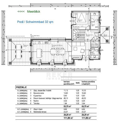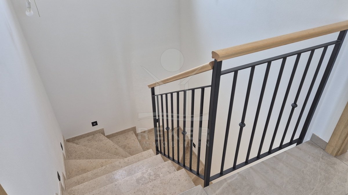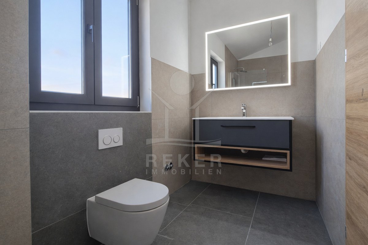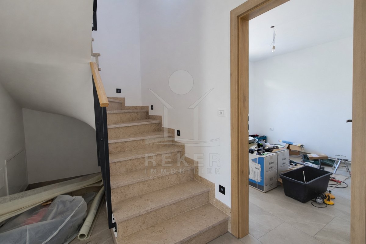 Diese moderne, freistehende Villa bei Poreč verbindet schönen Meerblick mit einer angenehm ruhigen Umgebung. Sie erreichen die Küste nach rund 6 km und das Zentrum von Poreč nach etwa 10 km. Im Alltag zeigt sich das Haus sehr praktisch. Die Zufahrt ist asphaltiert, direkt am Haus stehen Ihnen zwei eigene Parkplätze zur Verfügung.