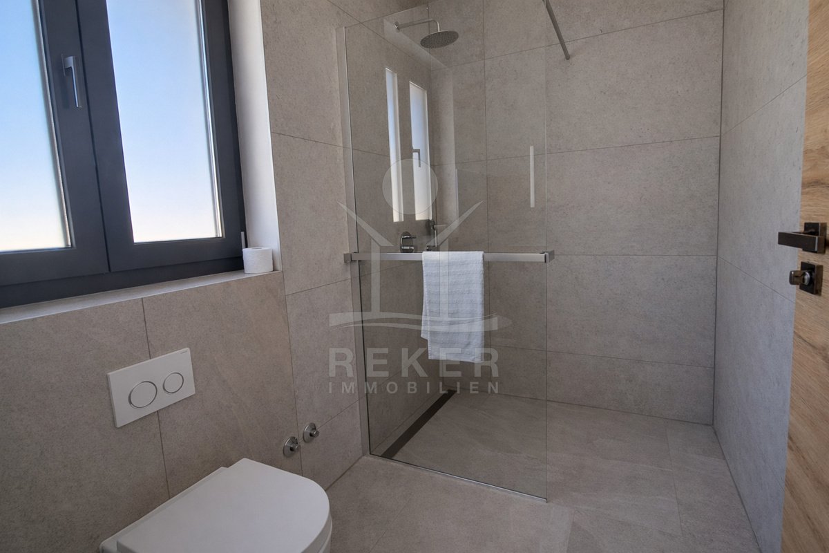 Diese moderne, freistehende Villa bei Poreč verbindet schönen Meerblick mit einer angenehm ruhigen Umgebung. Sie erreichen die Küste nach rund 6 km und das Zentrum von Poreč nach etwa 10 km. Im Alltag zeigt sich das Haus sehr praktisch. Die Zufahrt
