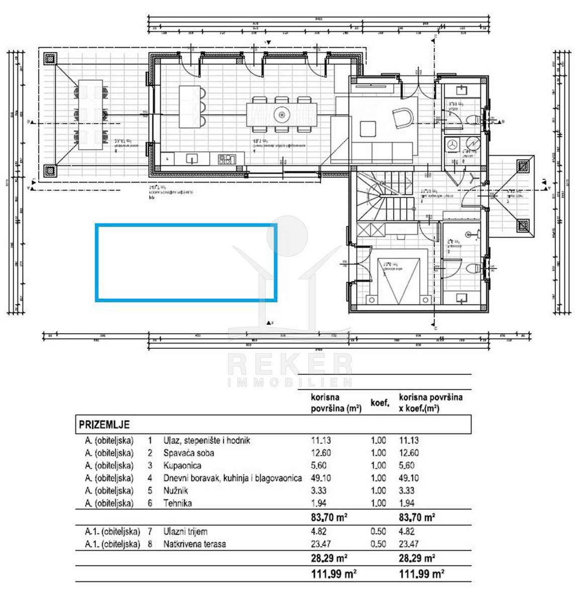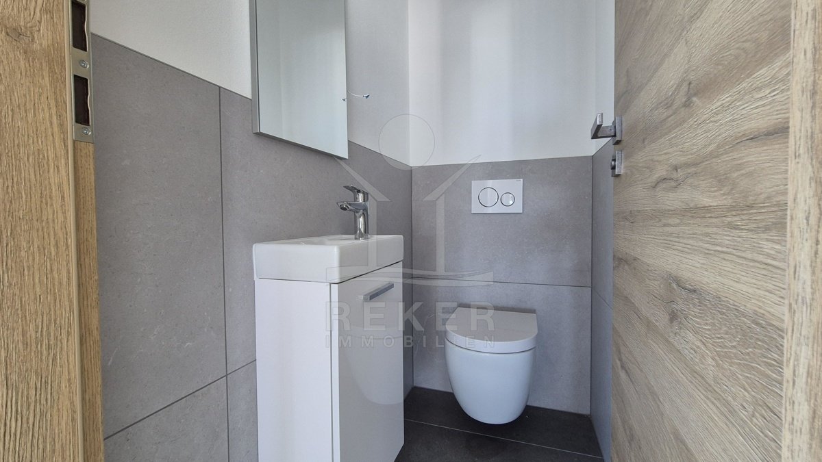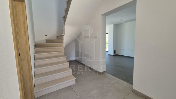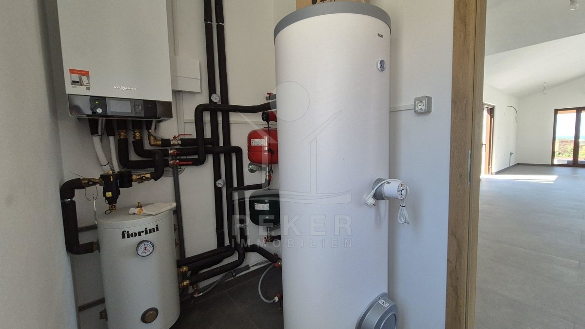 Zehn Minuten bis Poreč. Acht bis zur Küste. Und dazwischen: Ruhe, Meerblick und ein Ort, der Ihnen Luft zum Leben lässt. Diese freistehende Villa steht auf 750 m² Grund. Der Blick aufs Meer ist jeden Tag da … und bleibt es auch. Die Lage ist entspannt, aber nicht abgelegen. Ideal, wenn Sie einfach ankommen wollen und bleiben. Der Garten ist bereit für Ihre Ideen. Rasen, Palmen, Outdoor-Küche? Geht alles. Der Pool liegt perfekt zum Sonnen. Daneben die überdachte Terrasse – groß genug für Tisch, Lounge und Abendessen mit Freunden. Zwei Stellplätze gibt’s direkt am Haus.
