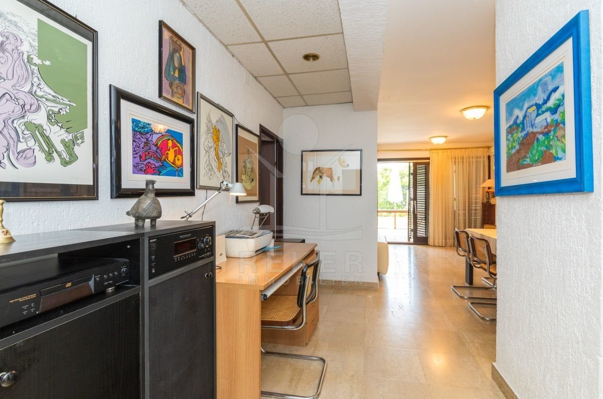 Der Außenbereich fühlt sich wie ein privates Stück Natur an. Ein schöner Garten mit alten Steinmauern, gepflegten Wegen und viel Grün. Die überdachte Terrasse im Erdgeschoss bietet Schatten und Blick ins Grüne. Ideal für lange Frühstücke oder ruhige Nachmittage. Wer will, kann hier auch einen Pool realisieren – Platz ist da. Die Umgebung bleibt ruhig, obwohl das Meer so nah ist, dass man es fast berühren kann.