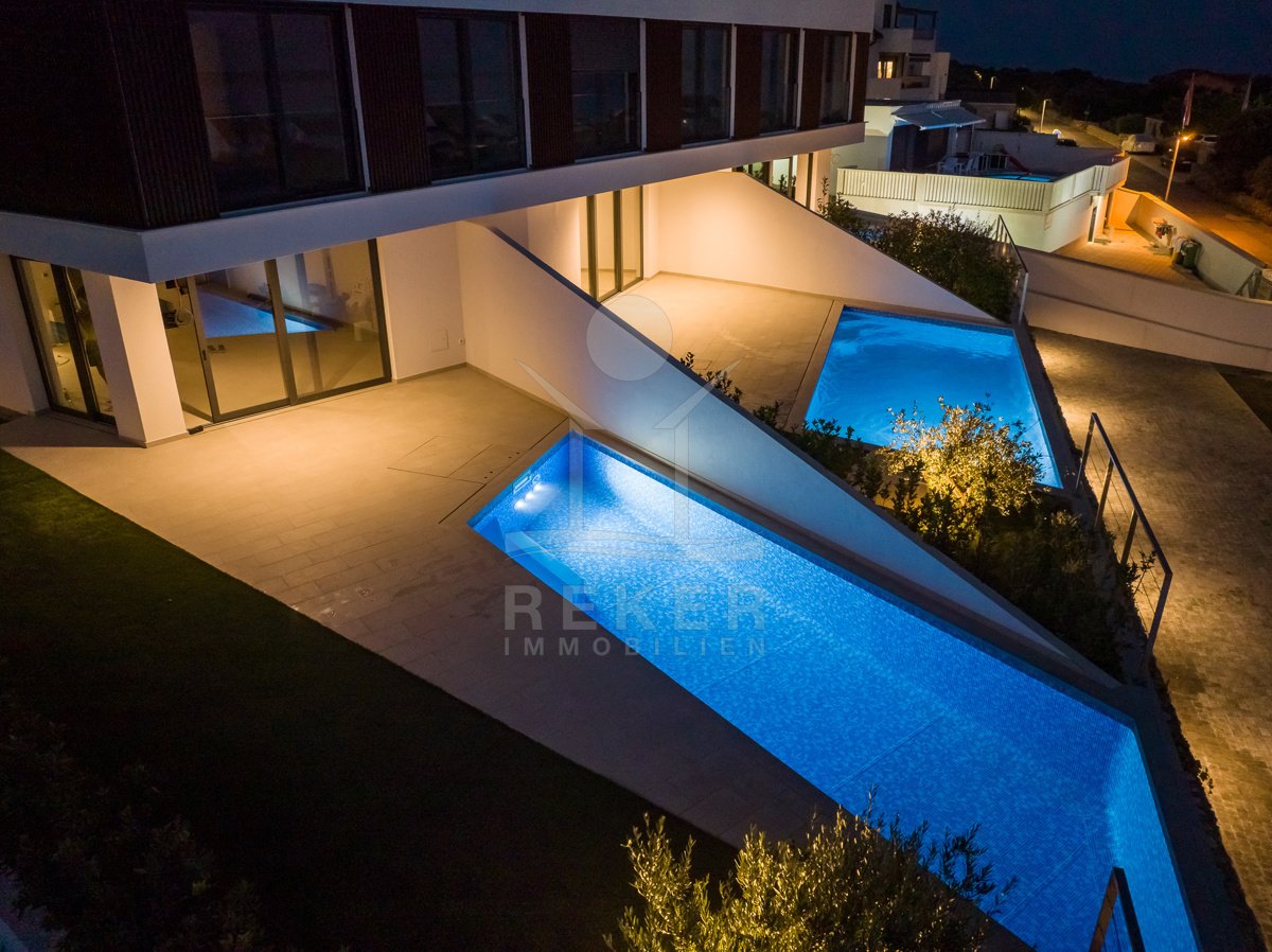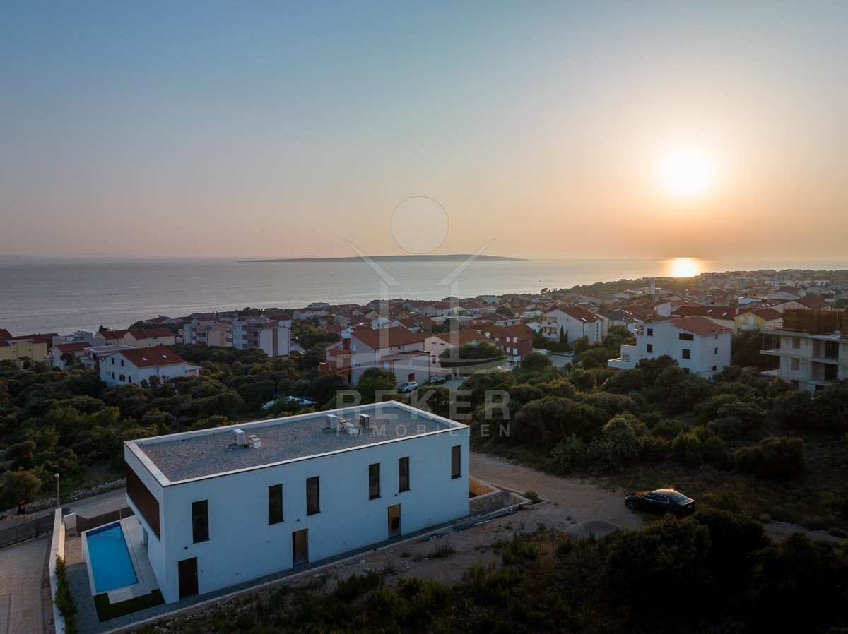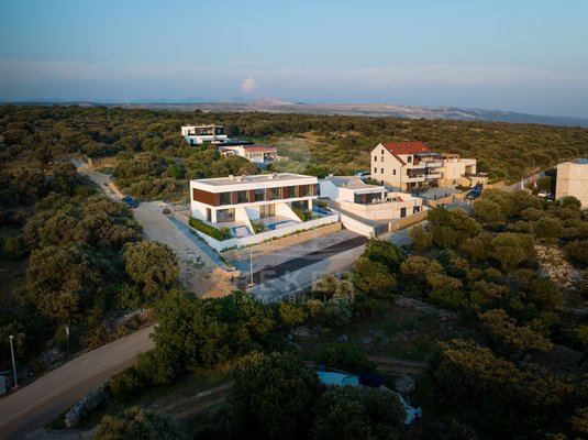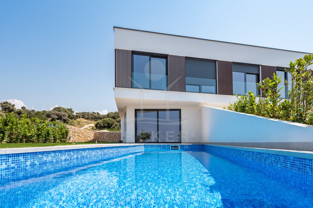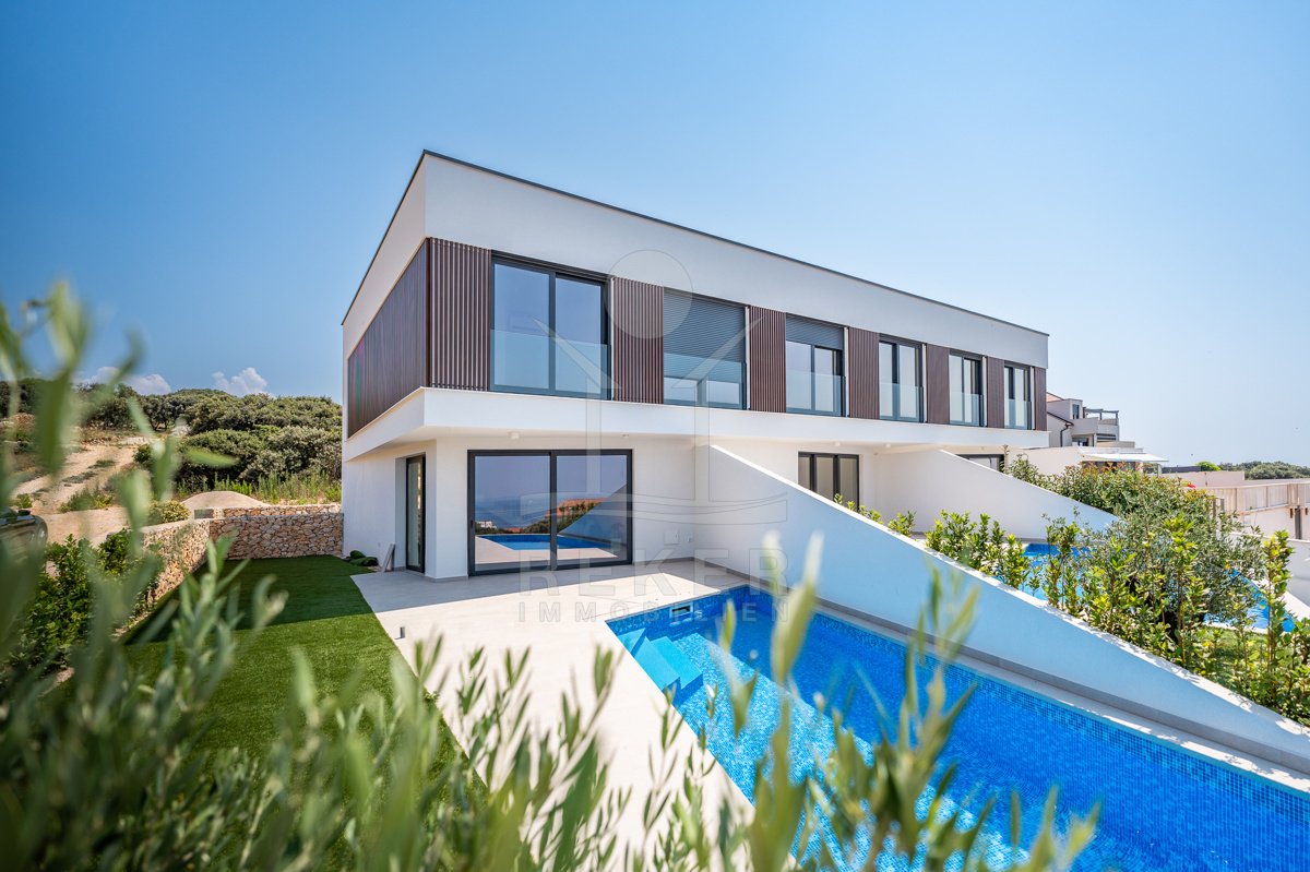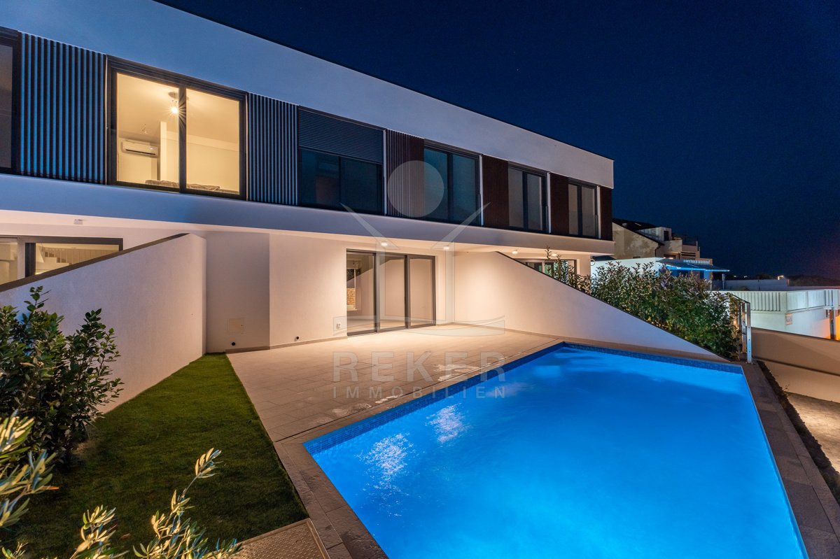 Treten Sie ein in Ihr persönliches Paradies auf der Insel Pag mit diesem exklusiven Neubau-Reihenhaus in Madre! Erleben Sie pure Entspannung in Ihrem eigenen Pool, nur wenige Schritte vom kristallklaren Meer entfernt. Der atemberaubende Meerblick von der Terrasse aus wird Sie jeden Tag aufs Neue verzaubern. Mit einer hochwertigen Konstruktion und Ausstattung, die keine Wünsche offen lässt, bietet dieses Reihenhaus den perfekten Rückzugsort auf der malerischen Insel Pag. Egal ob als persönlicher Rückzugsort oder als lohnende Investitionsmöglichkeit zur Vermietung – diese Immobilie verspricht ein luxuriöses Inselleben. Starten Sie Ihr neues Kapitel im Inselparadies und lassen Sie sich von uns bei der Realisierung Ihres Traums unterstützten. Kontakten Sie uns noch heute und entdecken Sie Ihre neue Traumimmobilie auf der Insel Pag!