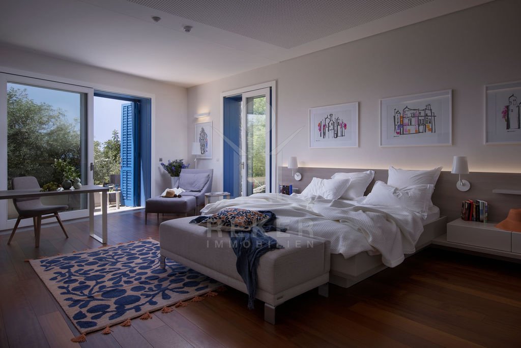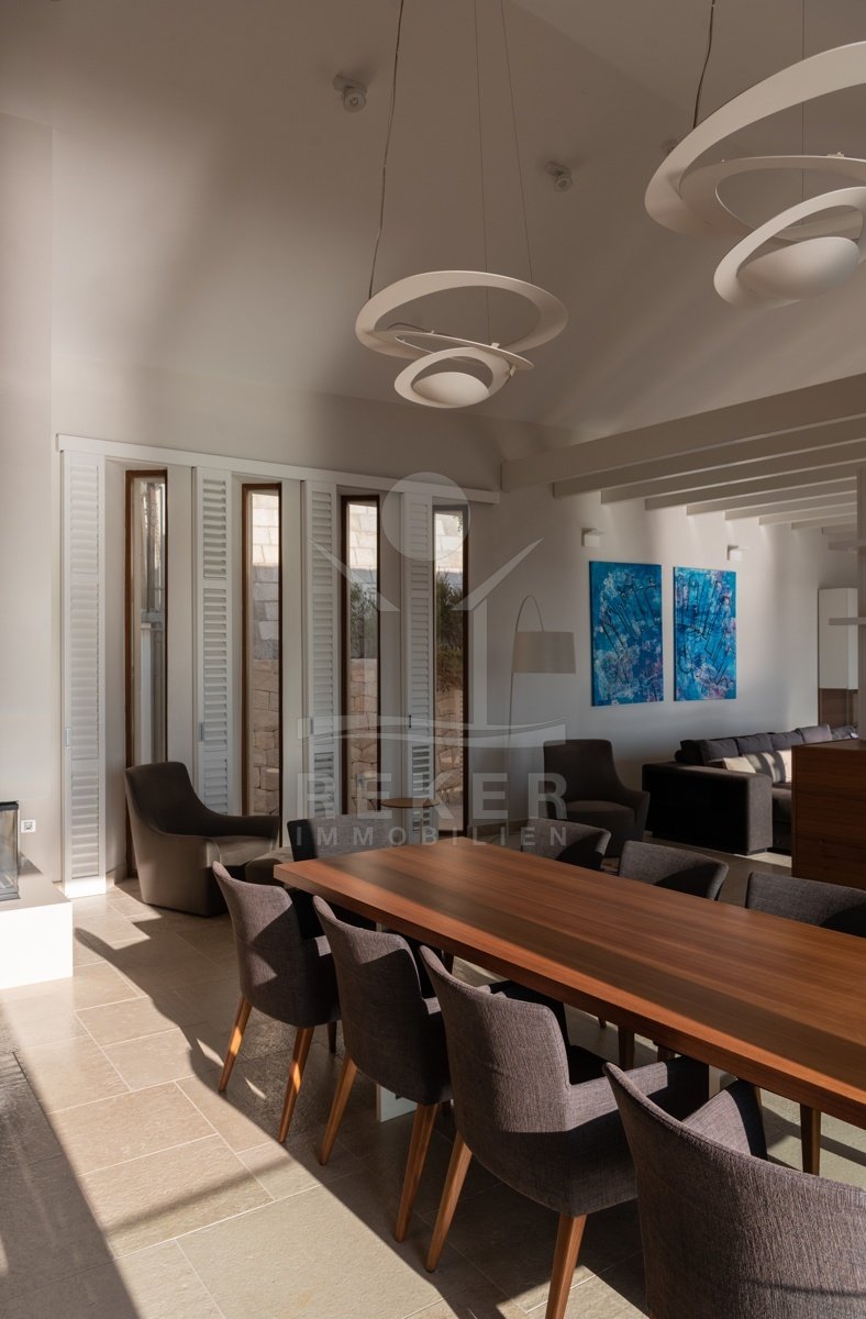 Der Panoramalift aus Glas bringt Sie mühelos zu den verschiedenen Etagen und sorgt für eine beeindruckende Perspektive auf die Umgebung. Hochwertige, handverlesene Materialien schaffen eine unnachahmliche Atmosphäre und garantieren höchsten Komfort. Die harmonische Verbindung aus modernem und traditionellem, mediterranem Design zieht sich durch das gesamte Anwesen.