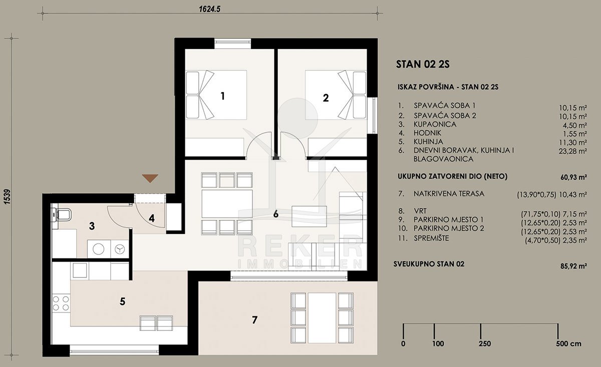 Dieses luxuriöse Neubauprojekt verspricht eine einzigartige Lebensqualität in einer der begehrtesten Städte Kroatiens. Die Erdgeschosswohnung bietet nicht nur eine erstklassige Ausstattung, sondern auch einen eigenen Garten, der Ruhe und Erholung