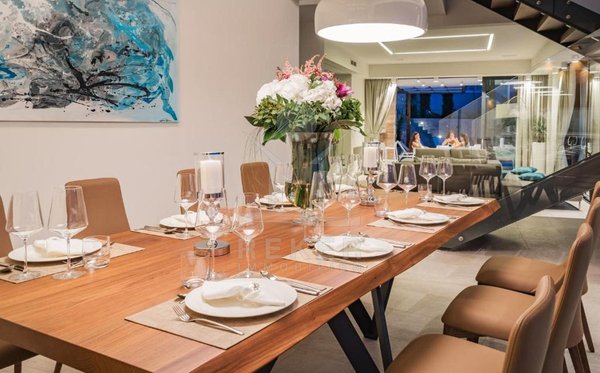 Willkommen in Ihrer ganz persönlichen Oase des Luxus auf der malerischen Insel Hvar! Diese exklusive Neubau-Villa mit 5* bietet Ihnen nicht nur atemberaubende Panorama-Meerblicke aus nahezu jedem Winkel, sondern auch einen Infinity-Pool, der nahtlos mit dem azurblauen Wasser der Adria verschmilzt. Der stilvolle Loungebereich und die weitläufige Außenanlage laden zum Entspannen und Verweilen ein, sei es bei Sonnenuntergängen oder geselligen Abenden mit Freunden. Die private Wellnessoase mit Whirlpool, Sauna und voll ausgestatteten Fitnessraum sorgt dafür, dass Sie Körper und Geist in perfektem Einklang halten können. Diese Villa ist der Inbegriff von modernem Luxus und unvergleichlichem Komfort. Erleben Sie das Beste, was das Leben zu bieten hat, und lassen Sie sich von der Schönheit Hvars inspirieren!