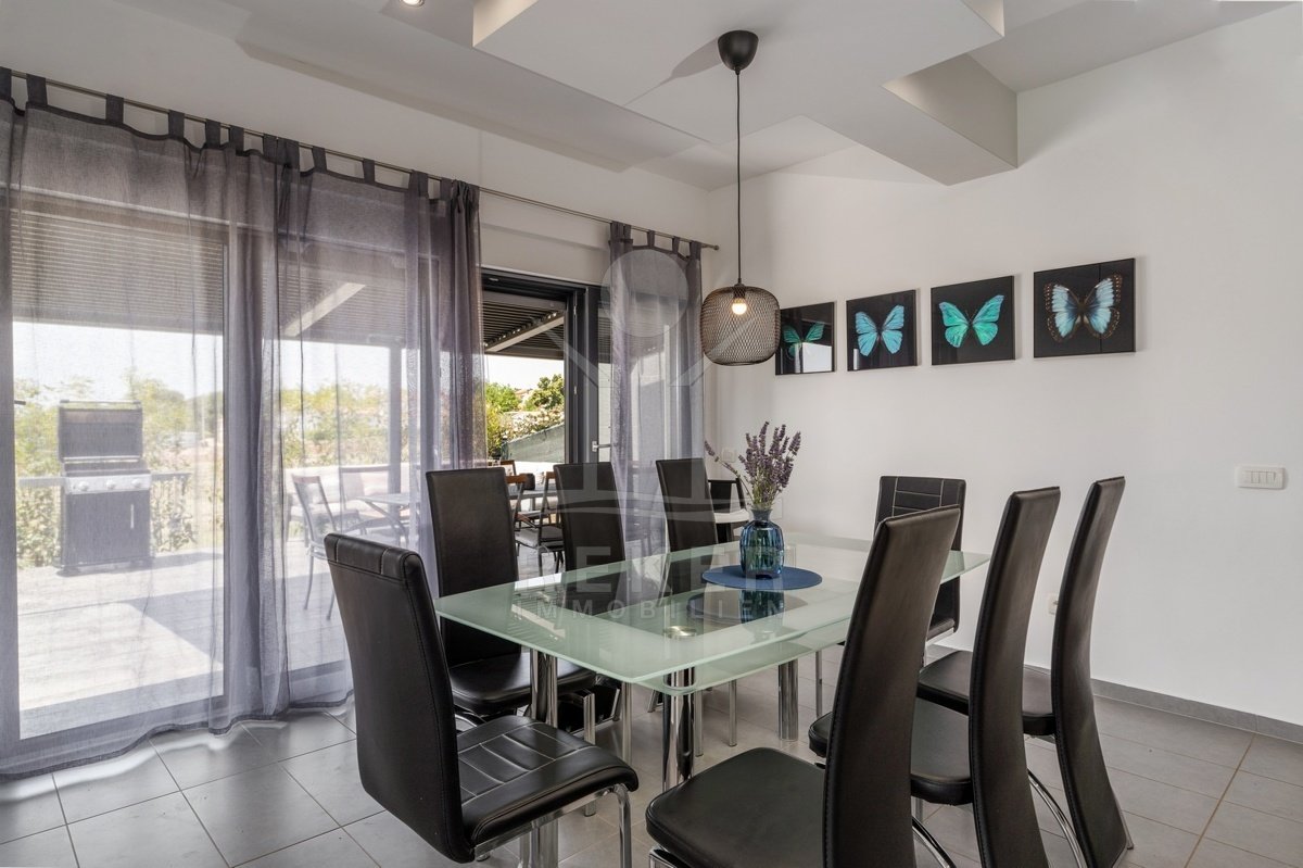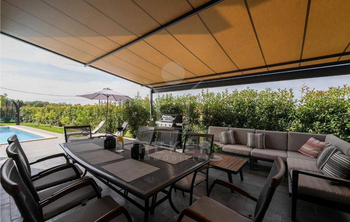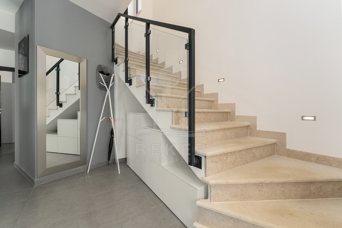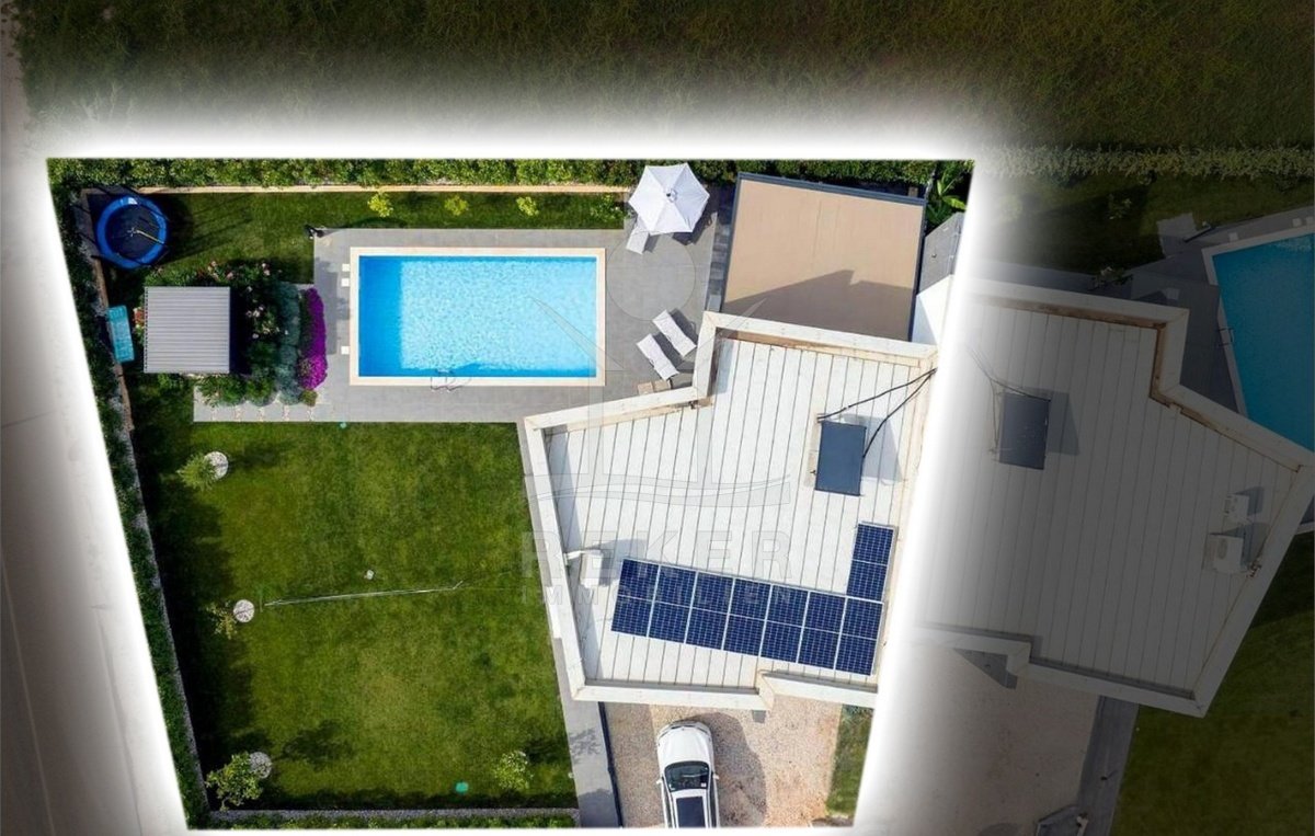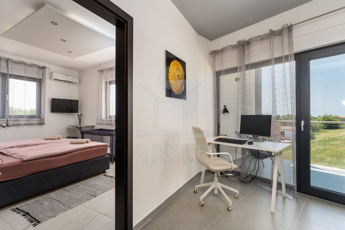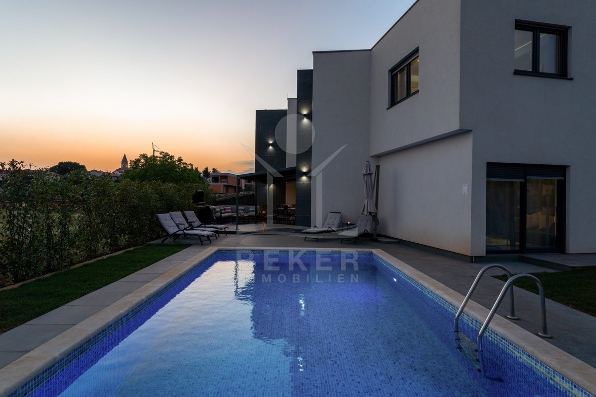 Erleben Sie das Beste des mediterranen Lebensstils in dieser hochmodernen Doppelhaushälfte in der Nähe von Poreč! Diese exquisite Immobilie bietet nicht nur herrlichen Meerblick, sondern auch eine großzügige Außenanlage, die mit einem beeindruckenden