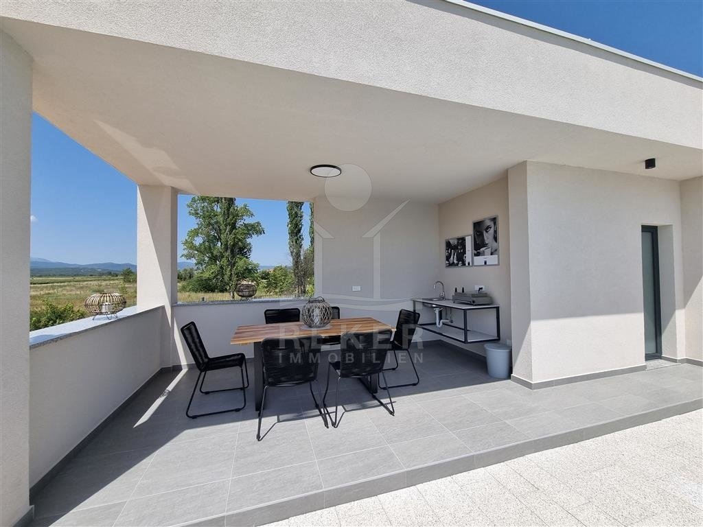 Erleben Sie den Inbegriff von Luxus und Komfort in dieser beeindruckenden Neubauvilla in Makarska! Umgeben von einem weitläufigen Grundstück mit landwirtschaftlicher Nutzfläche bietet dieses Anwesen nicht nur einen stilvollen Rückzugsort, sondern