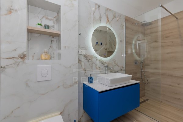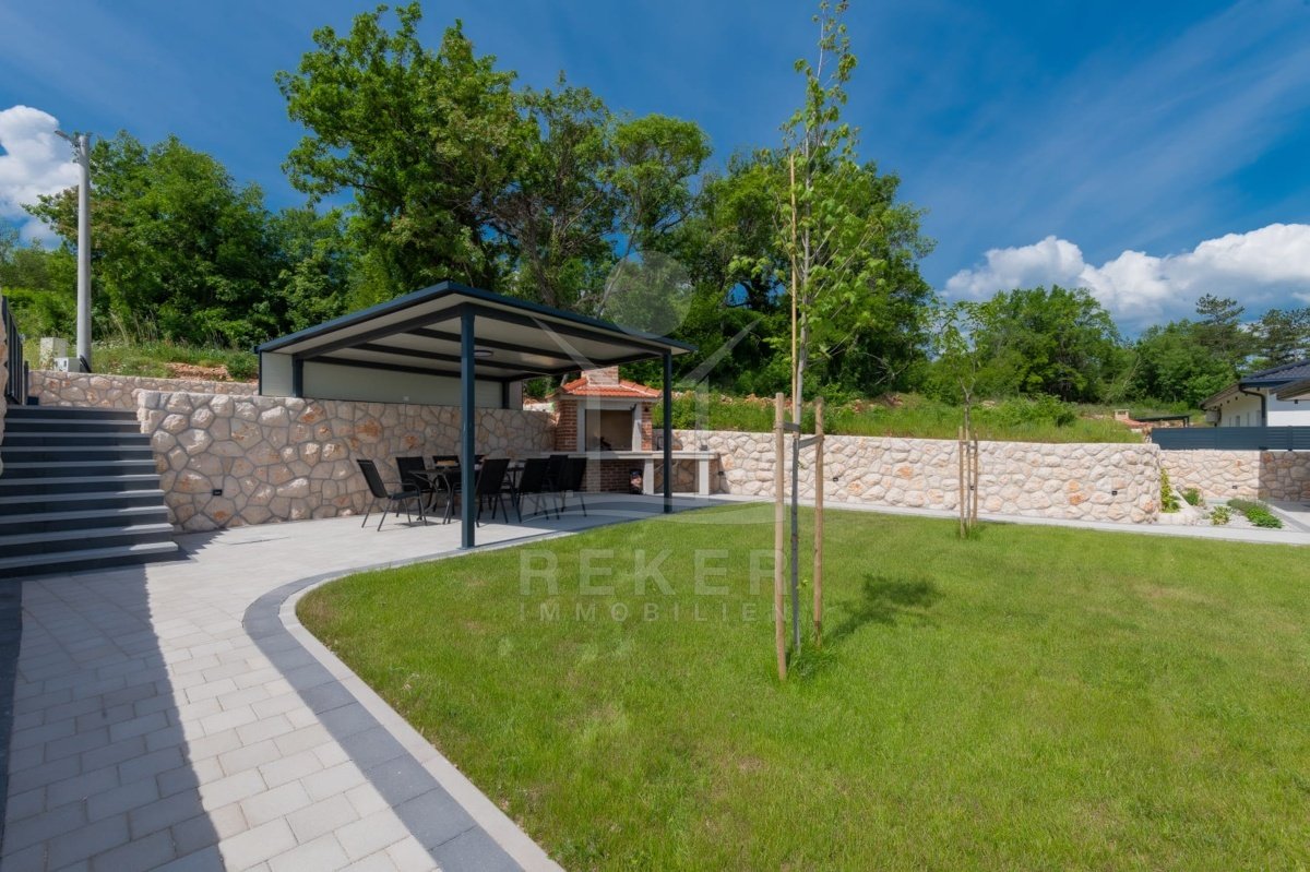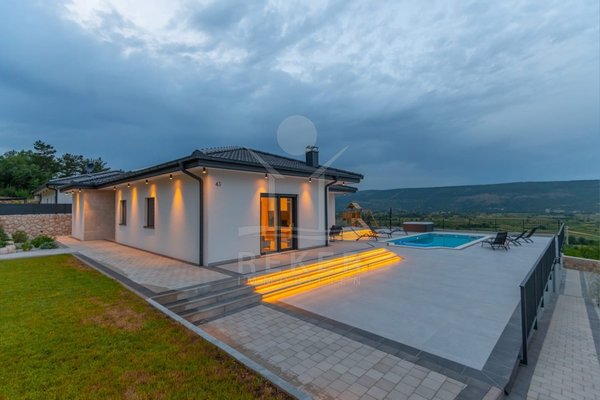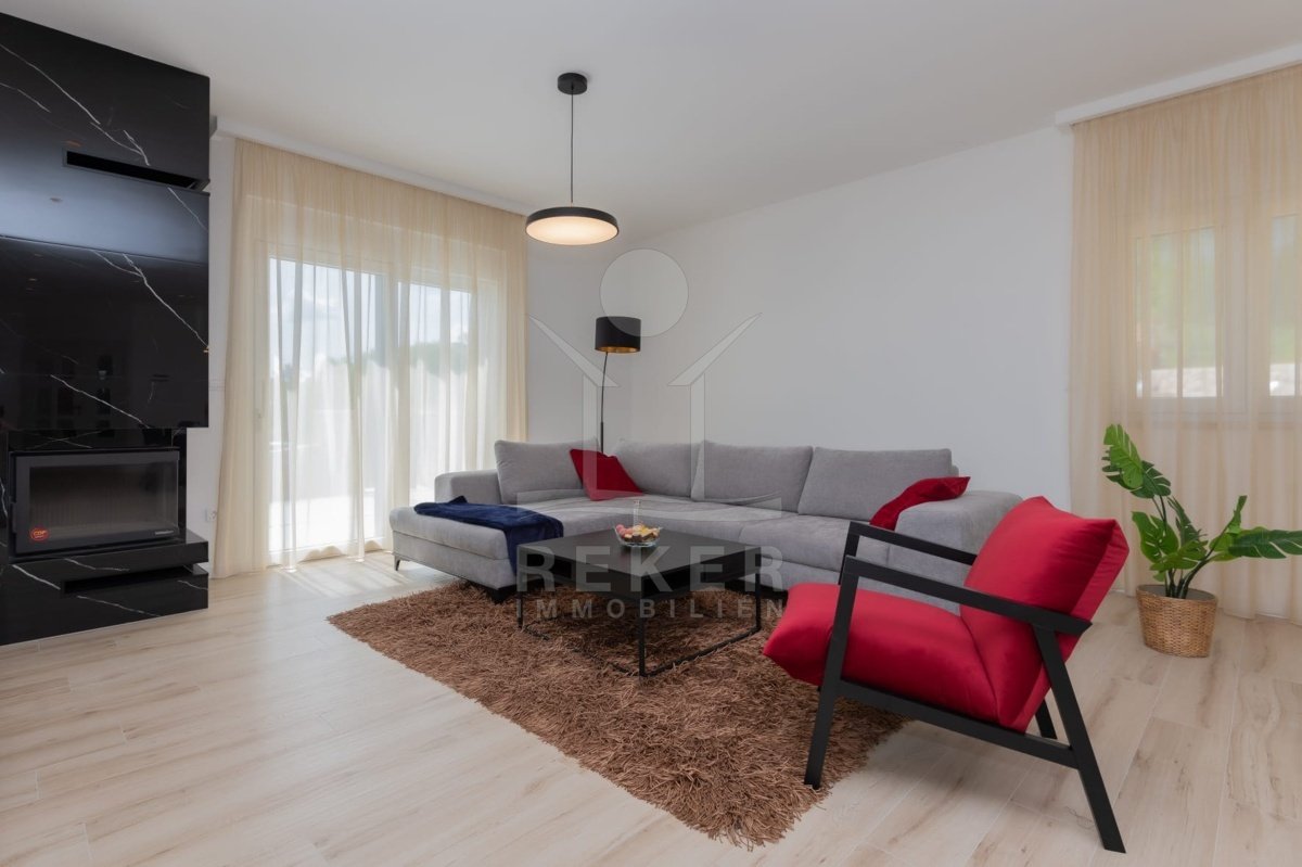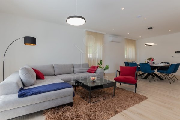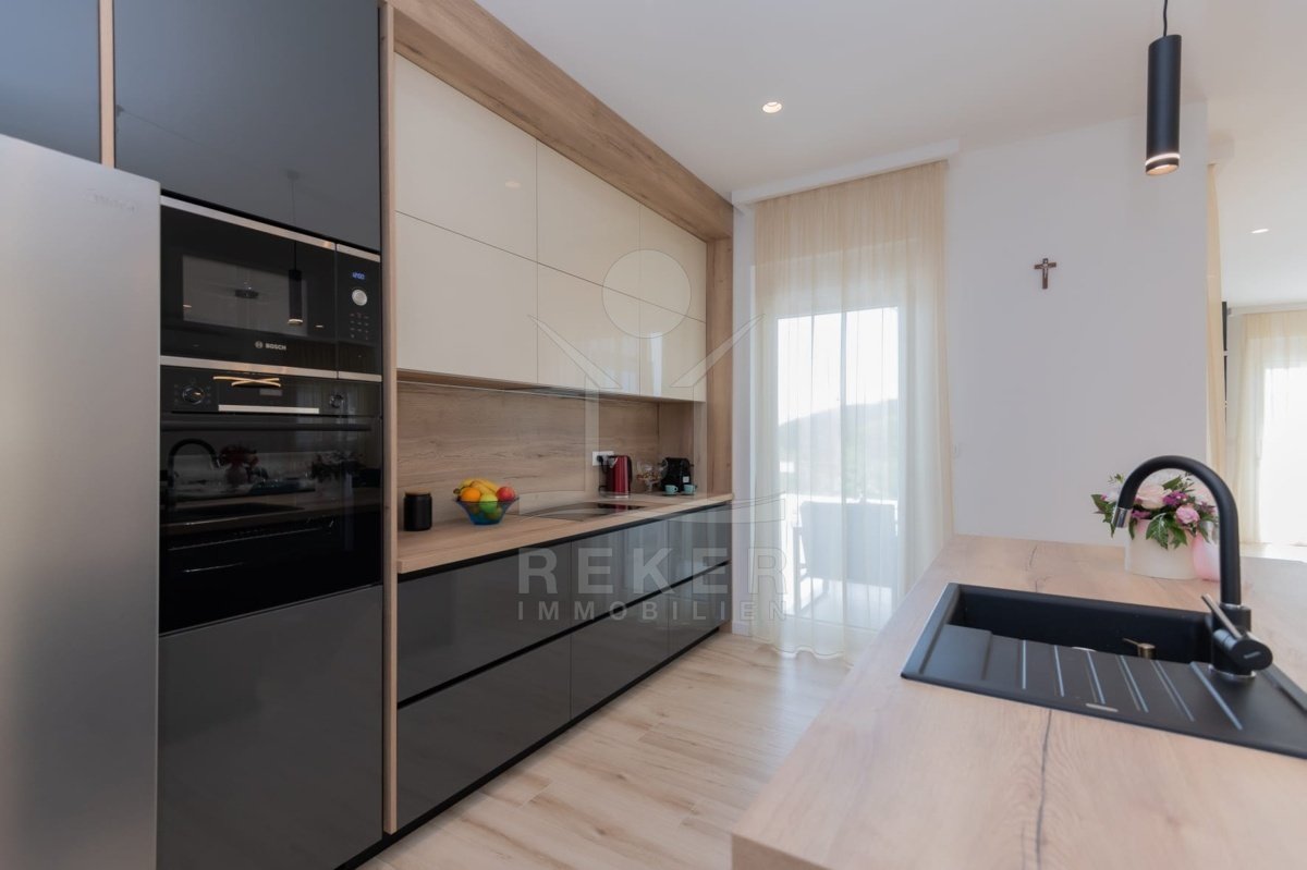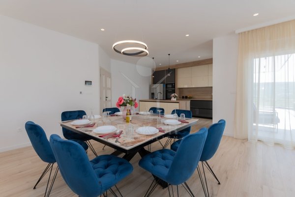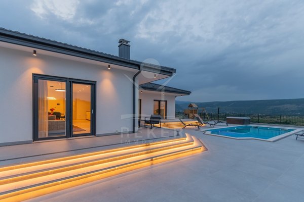 Das Anwesen erstreckt sich über 1200 m² und befindet sich in einer malerischen Lage mit Ausrichtung nach Norden und Osten. Das frei stehende Gebäude überzeugt durch eine elegante Wohnfläche von 195 m² und wurde als Neubau im Jahr 2024 errichtet. Die großzügige Gestaltung der Räume mit einer Deckenhöhe von 3 m sorgt für eine helle und luftige Atmosphäre. Die moderne Fußbodenheizung und die Klimaanlagen in jedem Raum garantieren höchsten Komfort und ein ideales Wohnklima zu jeder Jahreszeit. Im Keller befinden sich ein Technikraum sowie ein ungenutzter Raum von 40 m², der zahlreiche Nutzungsmöglichkeiten eröffnet.
