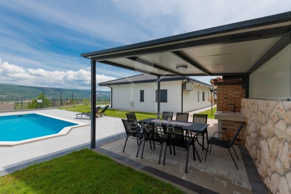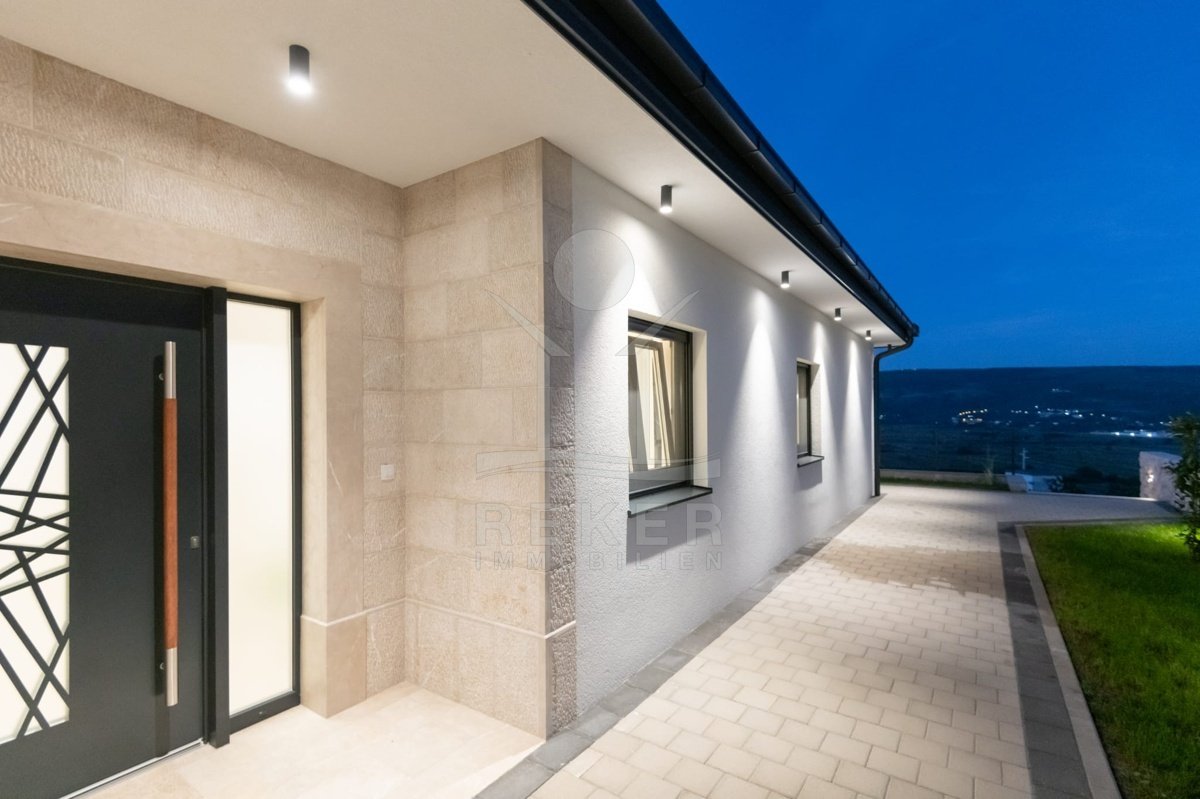 Diese herrliche Villa erstreckt sich über ein luxuriöses Grundstück von 1200 m² und präsentiert sich als frei stehendes Gebäude mit einer durchdachten Nord-Ost-Ausrichtung. Die Wohnfläche von 150 m² wird durch das Jahr 2024 charakterisiert, was bedeutet, dass Sie in ein nagelneues Zuhause einziehen. Die beeindruckende Deckenhöhe von 3 m sorgt für eine luftige Atmosphäre und lässt viel Tageslicht in die Räume strömen. Die Fußbodenheizung und Klimaanlagen in jedem Raum bieten zusätzlichen Komfort und ein angenehmes Wohnklima, während der Kellerrbereich Platz für einen Technikraum und einen zusätzlichen ungenutzten Raum von 40 m² bietet.