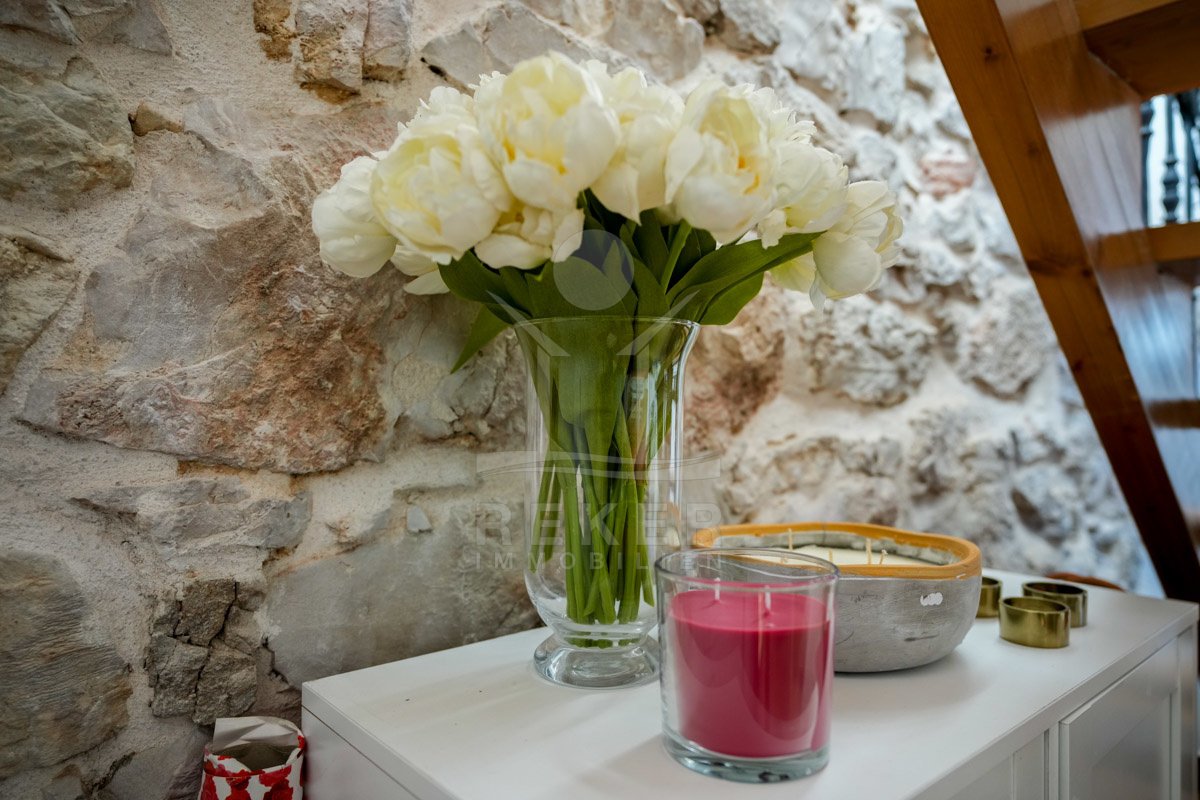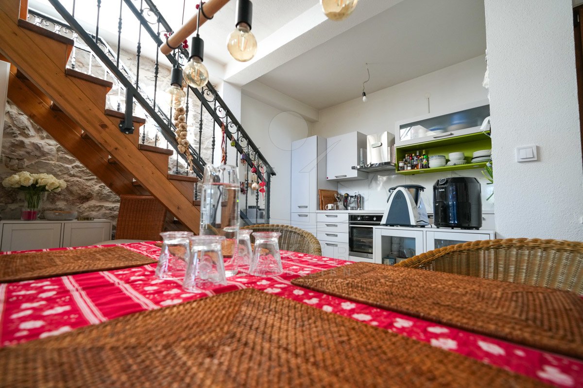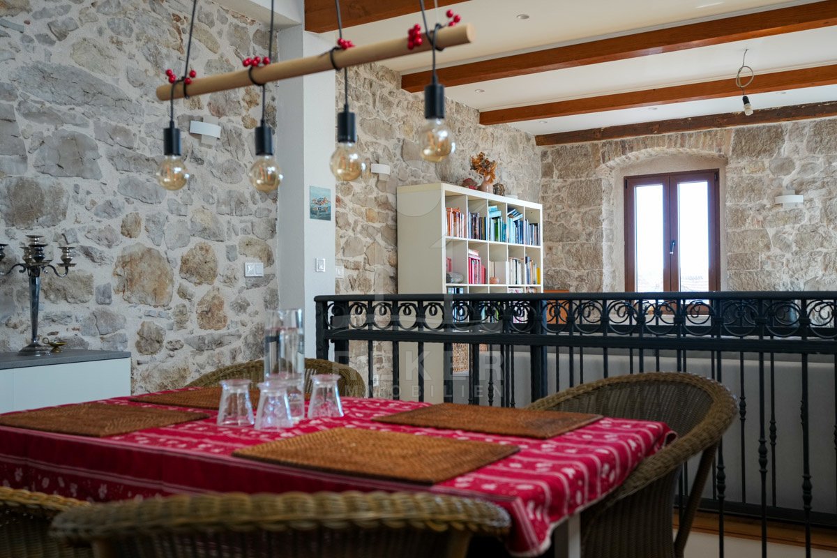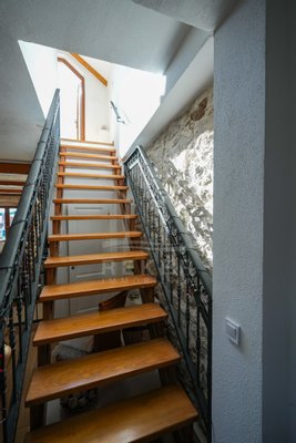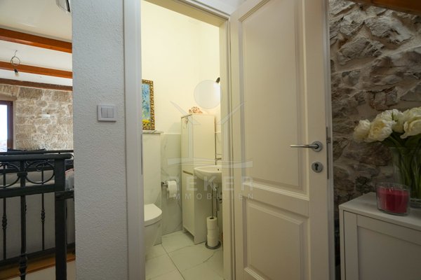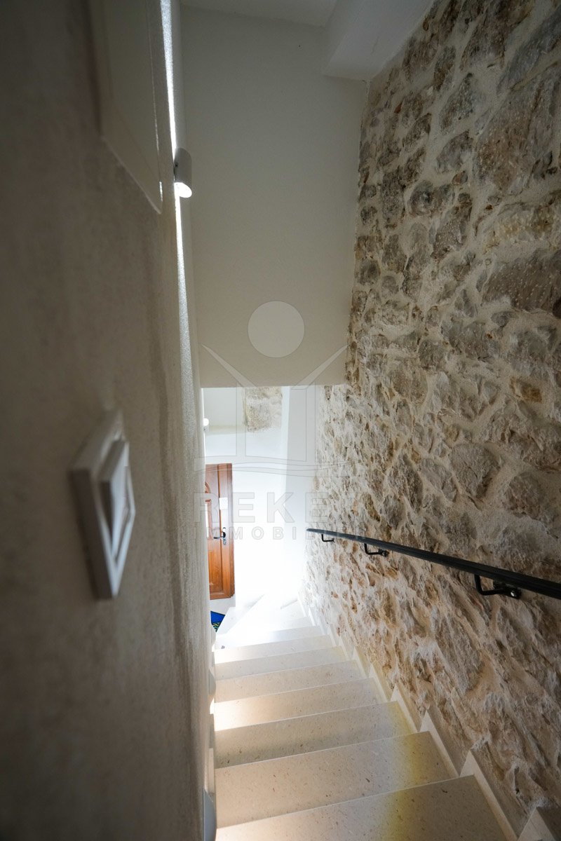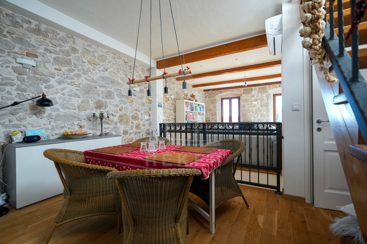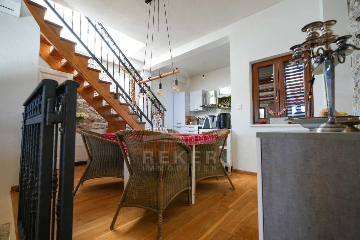 Tauchen Sie ein in den Charme und die Vielfalt dieses authentischen Steinhauses in Vodice, das Tradition und modernen Lebensstil auf harmonische Weise vereint. Strategisch im Stadtzentrum gelegen, sind Sie nur wenige Schritte vom glitzernden Meer