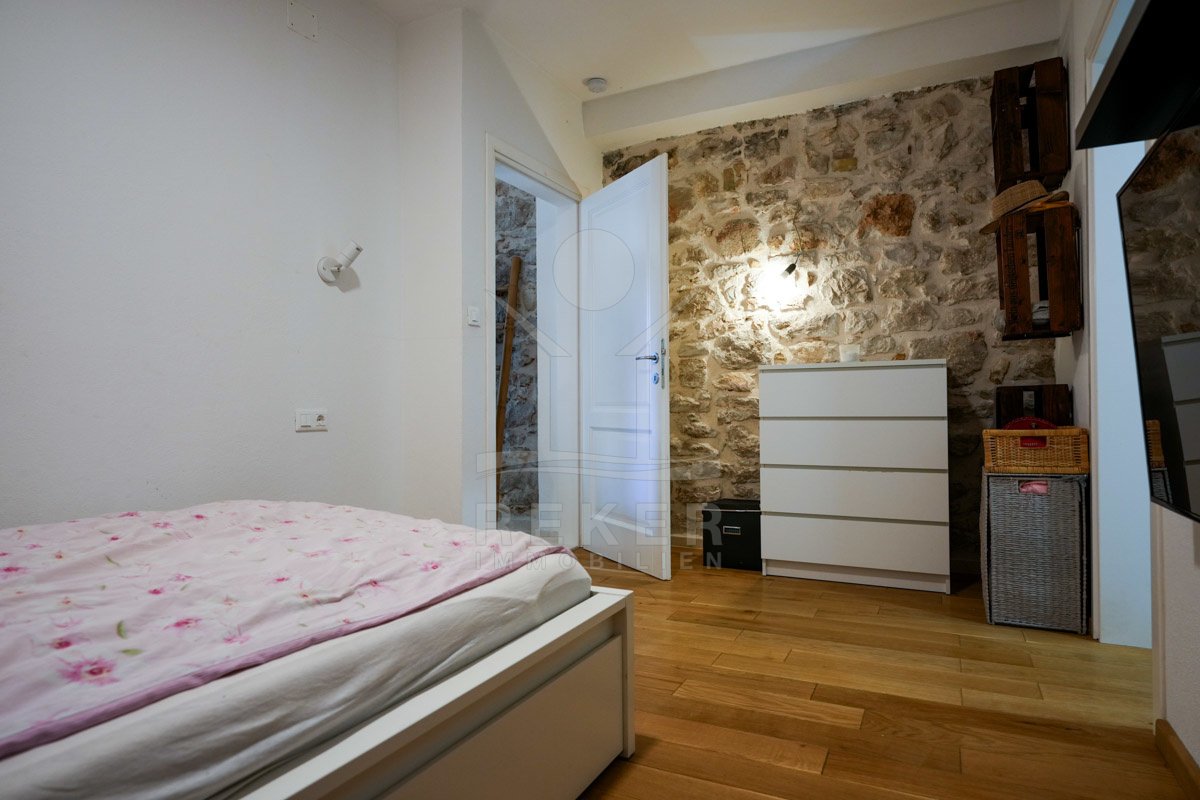 Tauchen Sie ein in den Charme und die Vielfalt dieses authentischen Steinhauses in Vodice, das Tradition und modernen Lebensstil auf harmonische Weise vereint. Strategisch im Stadtzentrum gelegen, sind Sie nur wenige Schritte vom glitzernden Meer entfernt, was Ihnen die Möglichkeit bietet, den pulsierenden Alltag des Küstenlebens zu genießen. Dieses vollständig möblierte Reihenhaus bietet Ihnen nicht nur ein gemütliches Zuhause, sondern auch die Flexibilität, es als lukrative Investitionsmöglichkeit im beliebten Touristensektor zu nutzen. Die einladende Dachterrasse wird zum perfekten Rückzugsort, um die zauberhaften Sonnenuntergänge über der Adria zu beobachten und gesellige Abende mit Ihren Liebsten zu verbringen. Lassen Sie Ihren Traum vom eigenen Zuhause in Kroatien Wirklichkeit werden und genießen Sie gleichzeitig die Vorteile eines lebhaften Standortes mit vielfältigen Freizeitmöglichkeiten und kulturellen Angeboten. Kontaktieren Sie uns noch heute, um mehr über dieses außergewöhnliche Angebot zu erfahren!