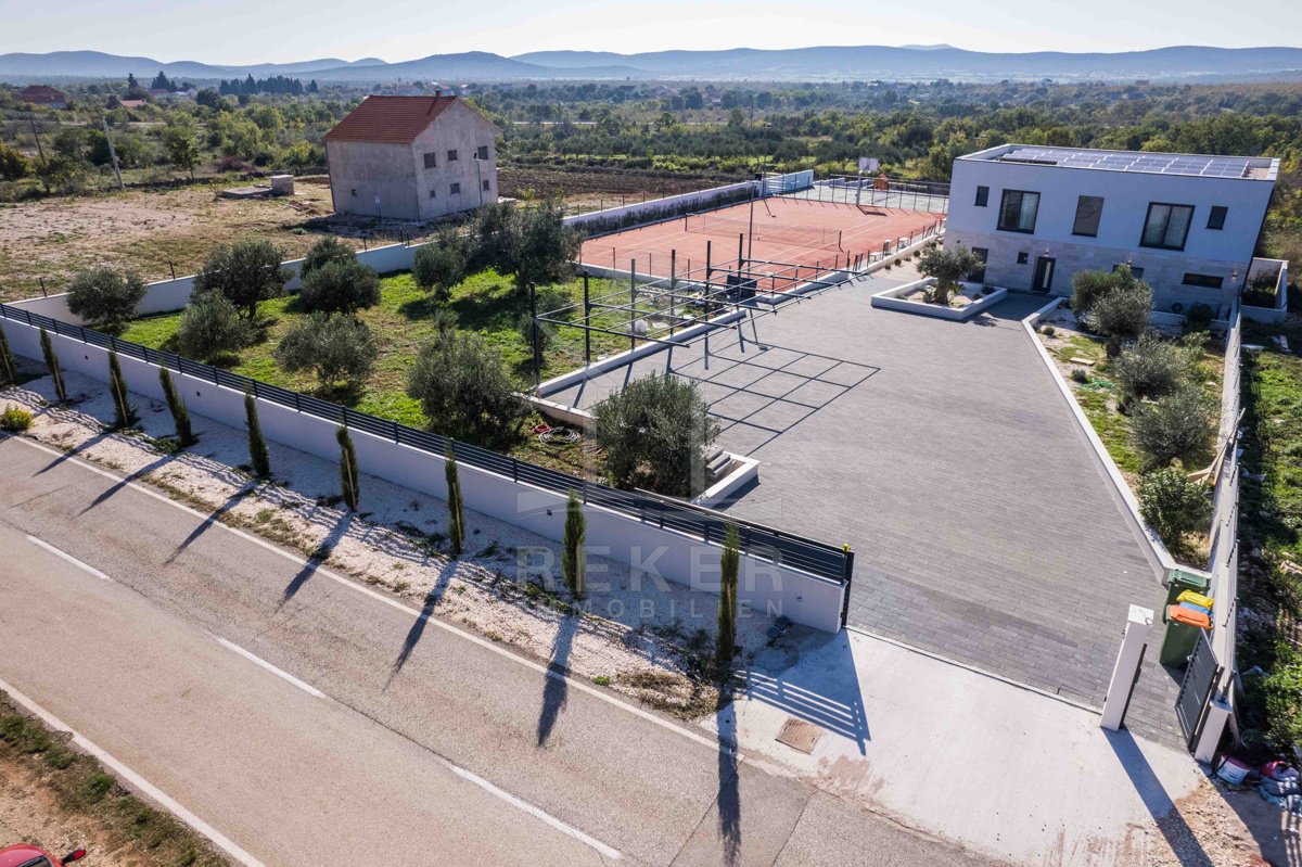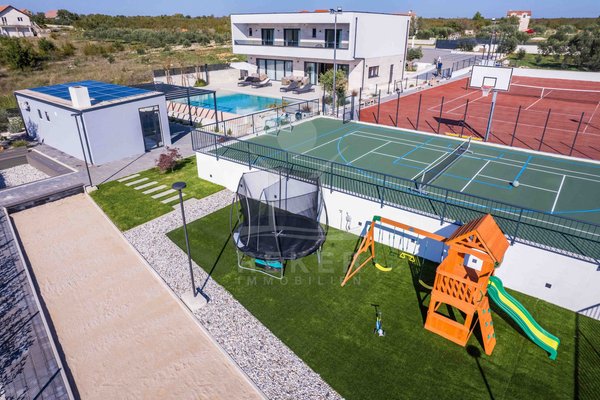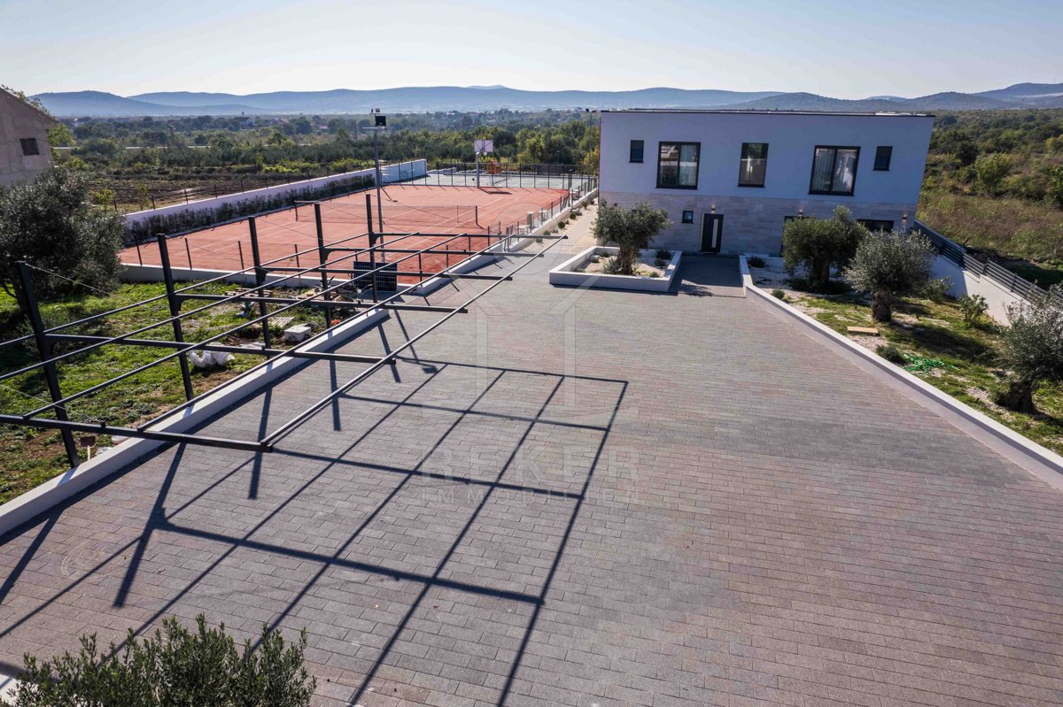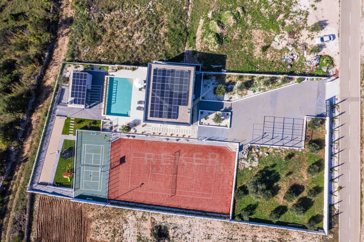 Willkommen in Ihrer neuen Oase der Luxus- und Entspannung! Diese beeindruckende Villa in der Nähe von Vodice ist der perfekte Rückzugsort für all jene, die das Besondere suchen. Umgeben von einer atemberaubenden Natur erwartet Sie ein weitläufiger Außenbereich, der mit einem großzügigen Swimmingpool, einem Tennisplatz und sogar einem Basketballplatz aufwartet – ideal für sportliche Aktivitäten und gesellige Zusammenkünfte mit Freunden und Familie.