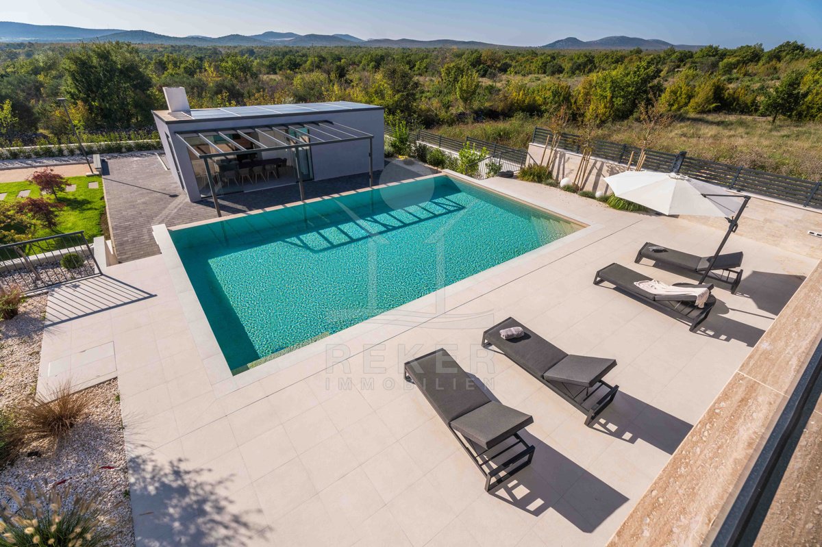 Willkommen in Ihrer neuen Oase der Luxus- und Entspannung! Diese beeindruckende Villa in der Nähe von Vodice ist der perfekte Rückzugsort für all jene, die das Besondere suchen. Umgeben von einer atemberaubenden Natur erwartet Sie ein weitläufiger