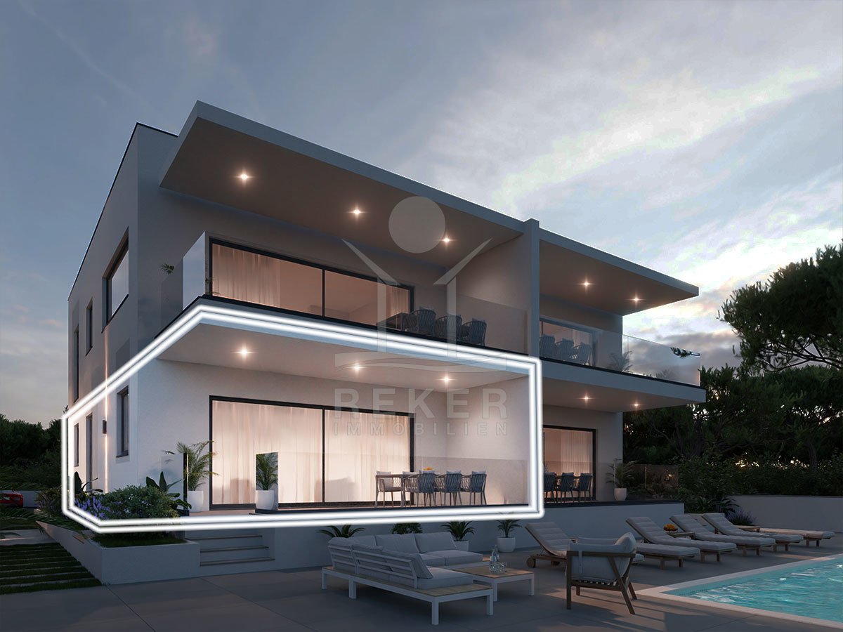 Luxuriöse Neubau Erdgeschosswohnung mit spektakulärem Meerblick & beheiztem Gemeinschafspool auf Pag